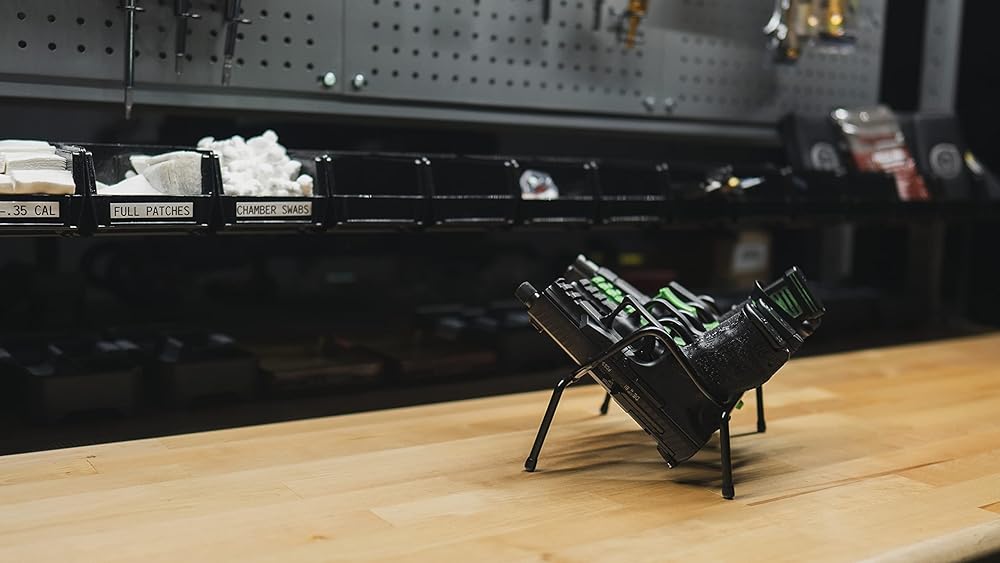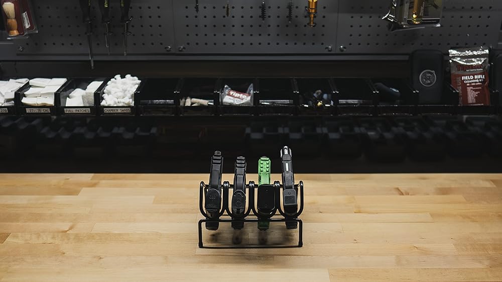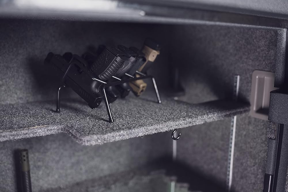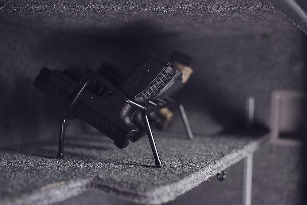 Free up space efficiently in your gun safe with the Lockdown 6-handgun muzzle rack. This compact pistol rack is the perfect tool for creating room in your Vault or even on your bench at the range. The design allows for confident storage and stability with its over-molded construction and upright access design to make your handgun selection process quick and easy.