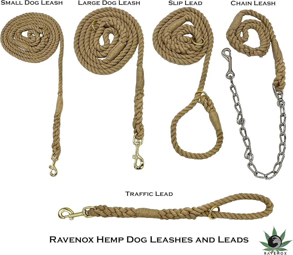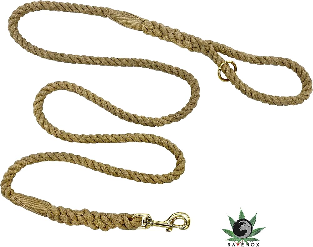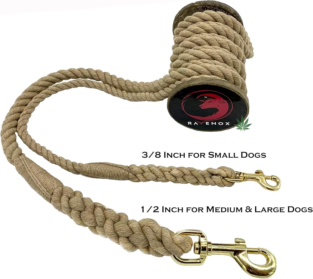 Ravenox Hemp Rope Leash Lead | 3/8-inch x 6 Foot for Small Dogs & Pets (Natural Tan) | Handmade in The USA with 100% American Made Genuine Hemp Rope | Soft Natural Fiber, Heavy Duty Hardware