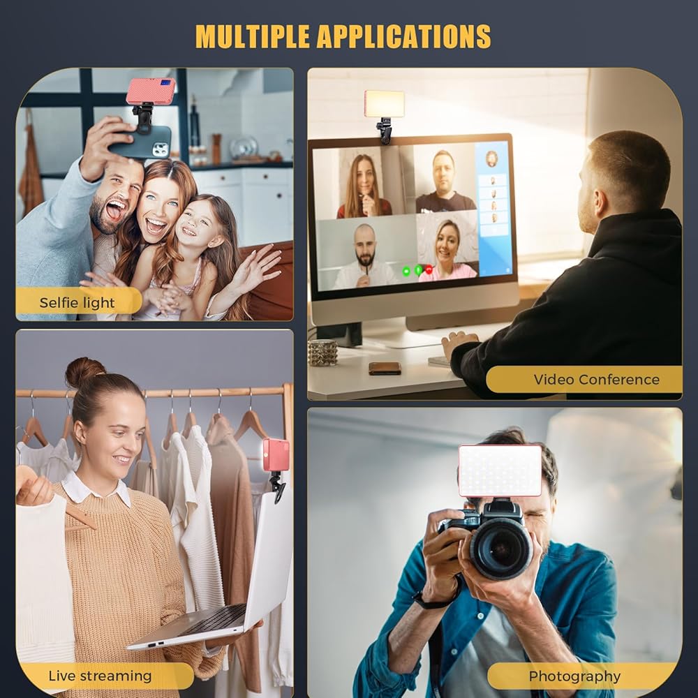 【Multi-Functional Design】Selfie light offers 3 versatile usage modes. The front clamp attaches easily to the front of your device with a 360° rotation button, allowing for adjustable lighting angles up to 180°. The rear clamp securely attaches it to the back of your phone and rotates 360°, providing enhanced lighting for photos or videos using the rear camera.Besides, the provided desktop stand enables the selfie light to function as a convenient desk lamp, effectively saving space.