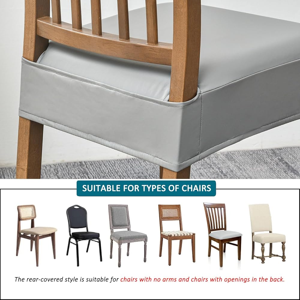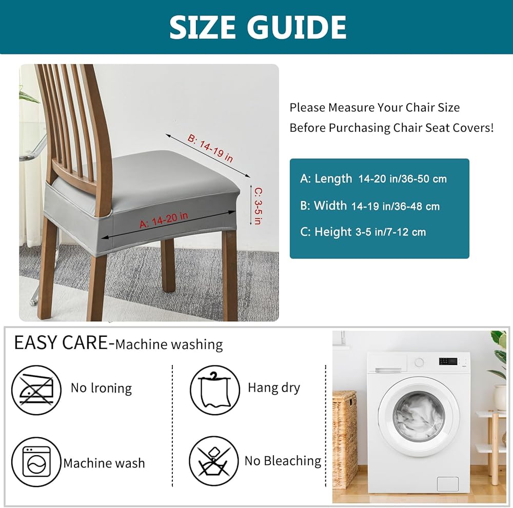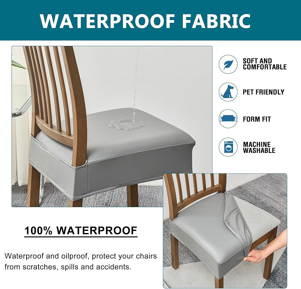 Waterproof Chairs Seat Covers: KRFOONN dining chair seat cover are crafted from artificial leather material. High stretchy and comfortable, wrinkle resistant and long lasting. It has elastic bottom for keeping in place firmly, will perfectly stretch to snug fit your chair seat cushion, easily update your furniture.