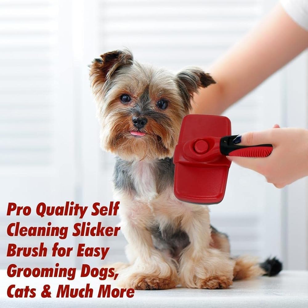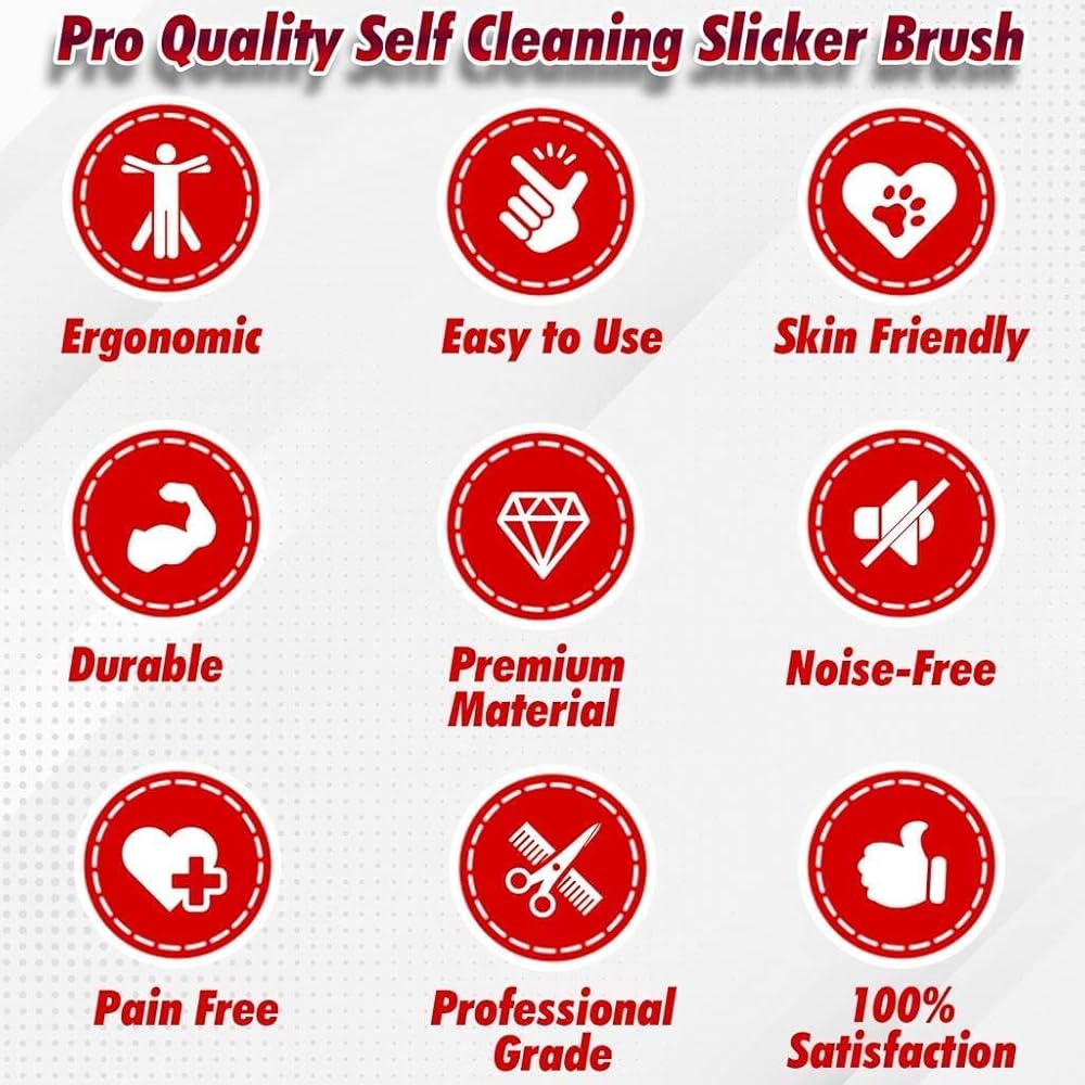 Pro Quality Self Cleaning Slicker Brush for Easy Grooming Dogs, Cats & Much More