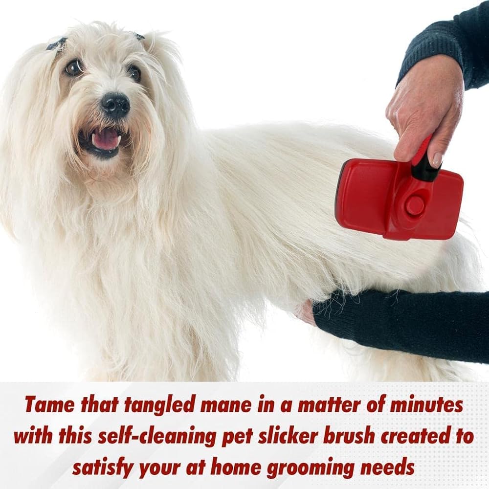 Tame that tangled mane in a matter of minutes with this self-cleaning pet slicker brush created