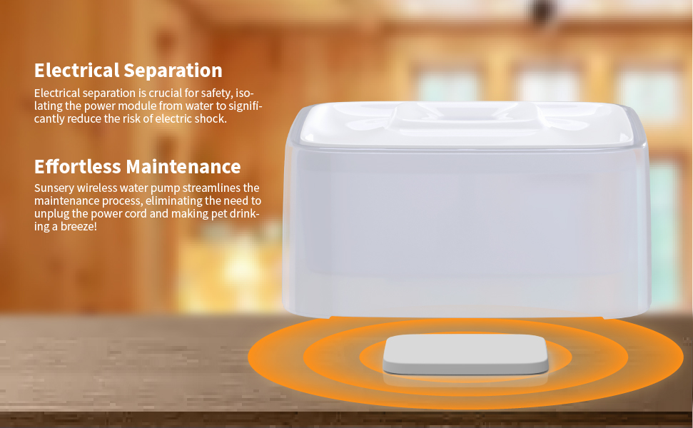 【Wireless Pump Technology】Features an ultra-quiet design (only 23dB) ensuring electrical safety and water separation, no complex wiring required, built-in dry-burning prevention to enhance durability, equipped with a low water level reminder. Note: The fountain main body needs to be connected to a power source, while the pump operates wirelessly.