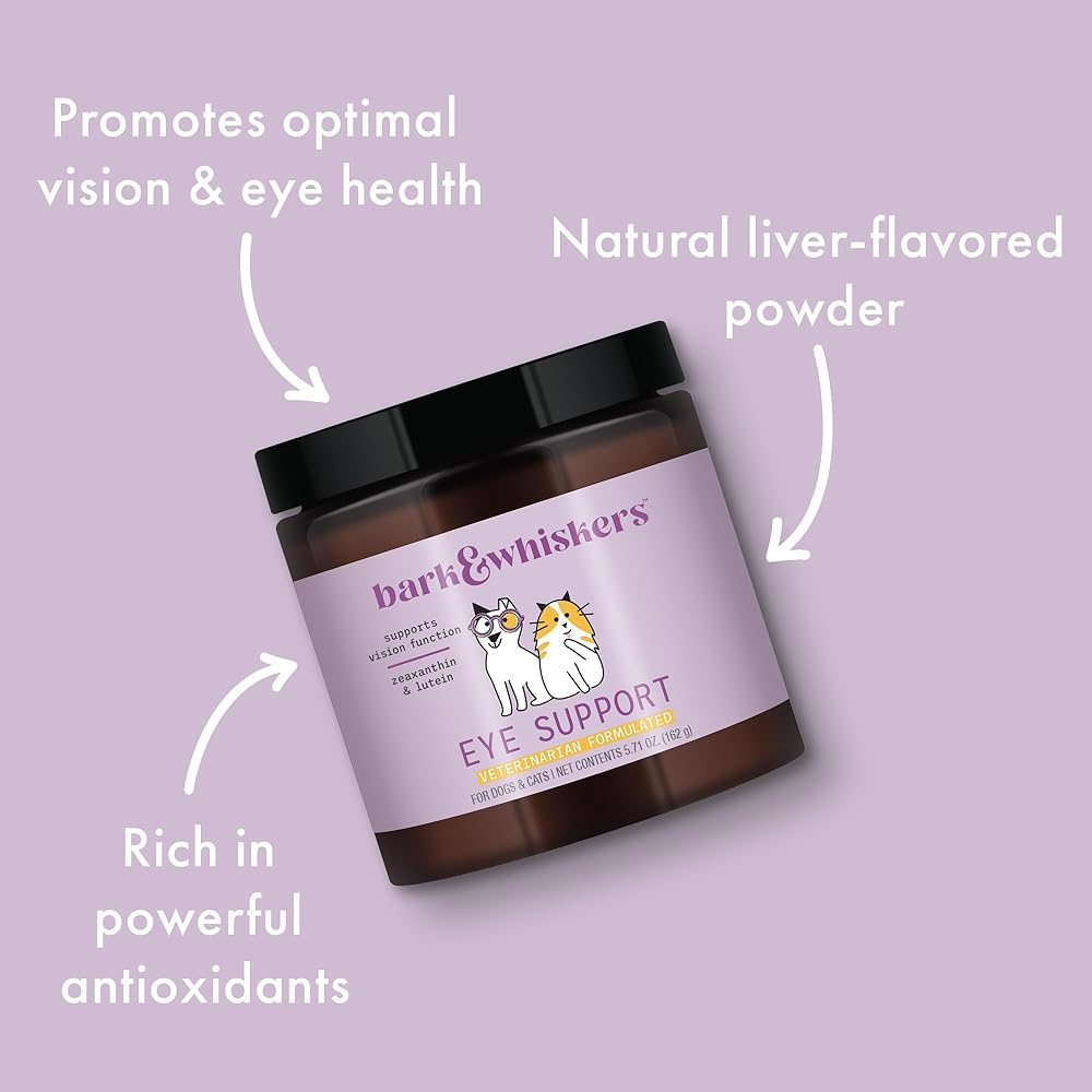 Bark & Whiskers Eye Support is a powerful lineup of 6 antioxidant vitamins and herbs that provide a broad range of free radical-fighting support targeted for your pet's vision and ocular health