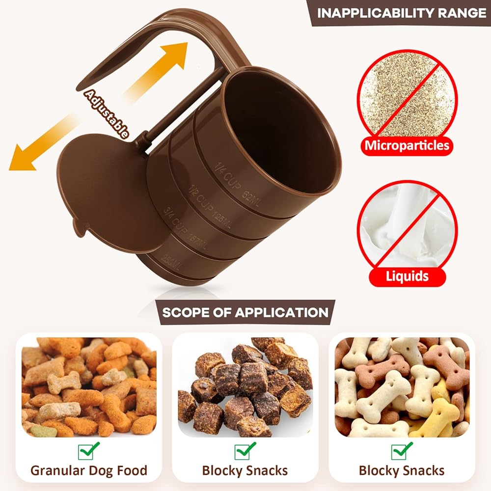 4 in 1 Pet Food Scoop: You can slide the disc up and down to choose the right capacity according to your needs and avoid overfeeding. This pet measuring spoon makes it easy to take correct measurements and keep them correct, preventing overfeeding your pet and causing your pet to be overweight.