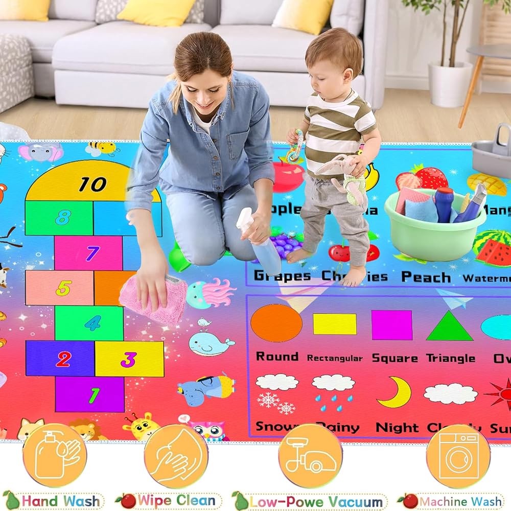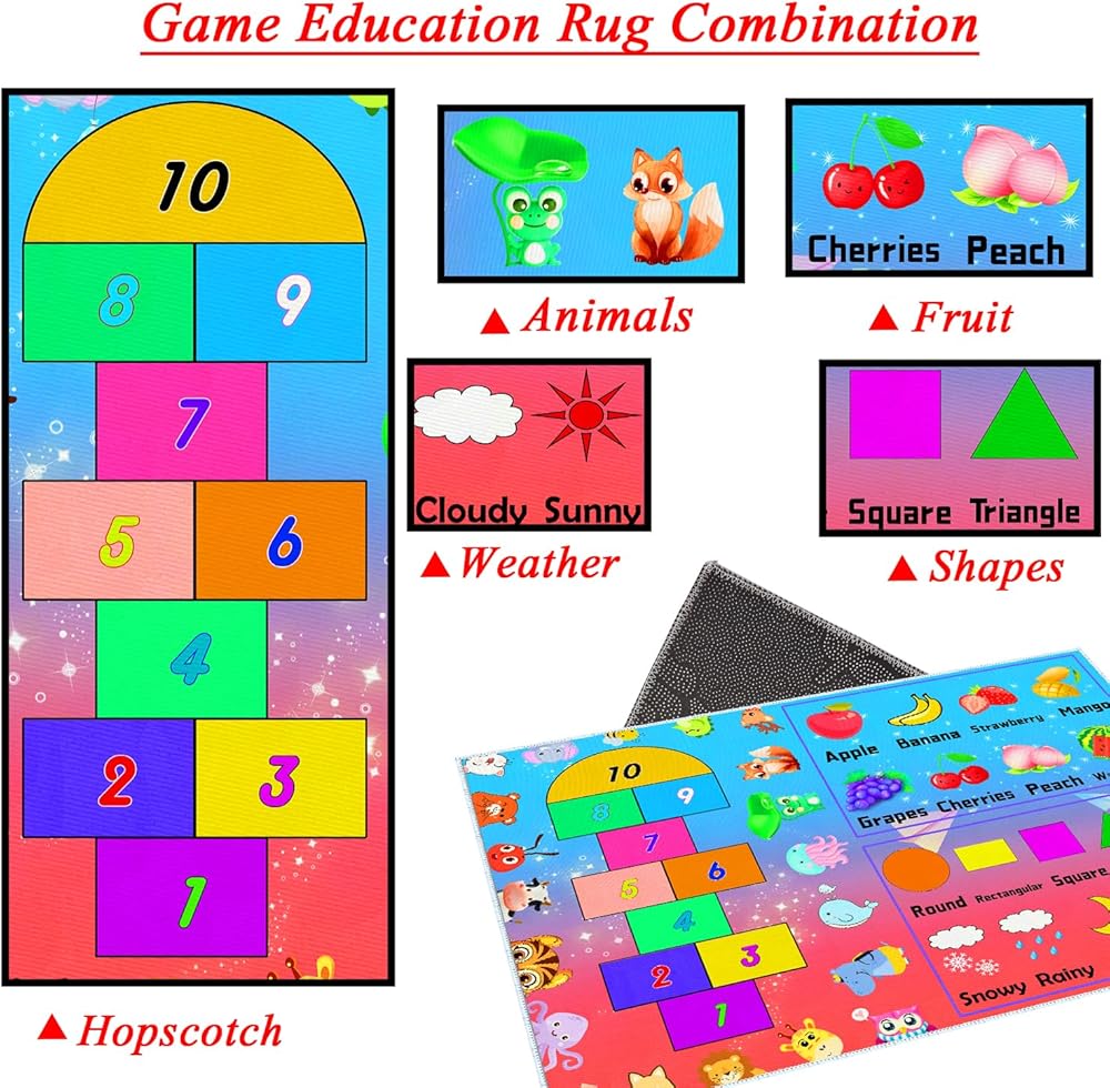 Learning Game Rug: The fun game rug combines a fun hopscotch game, cute animals, various fruits, shapes and colors to allow your little one to happily explore and learn while playing
