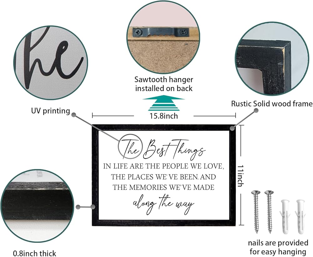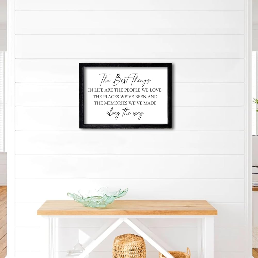 Comurdyo The Best Things in Life Sign 15.7''×11'' Framed Wood Memories Inspirational Quotes Wall Decor Vintage Farmhouse Wedding Gifts Sign Wall Art for family Home Bedroom (Black White)