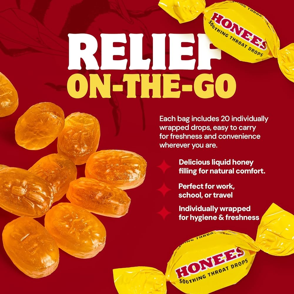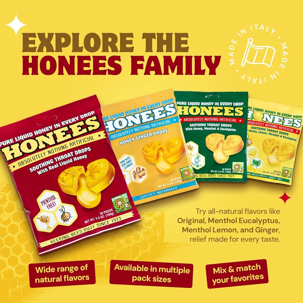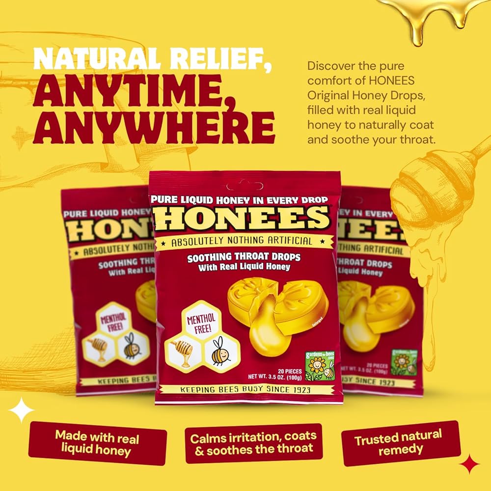 Experience soothing relief and refreshment with Honees Menthol Eucalyptus Drops. These delightful drops are carefully crafted to provide a comforting sensation. Each package contains 20 drops, ensuring you have plenty of relief whenever you need it. Treat yourself to the cool and invigorating blend of menthol and eucalyptus in these delicious drops.
