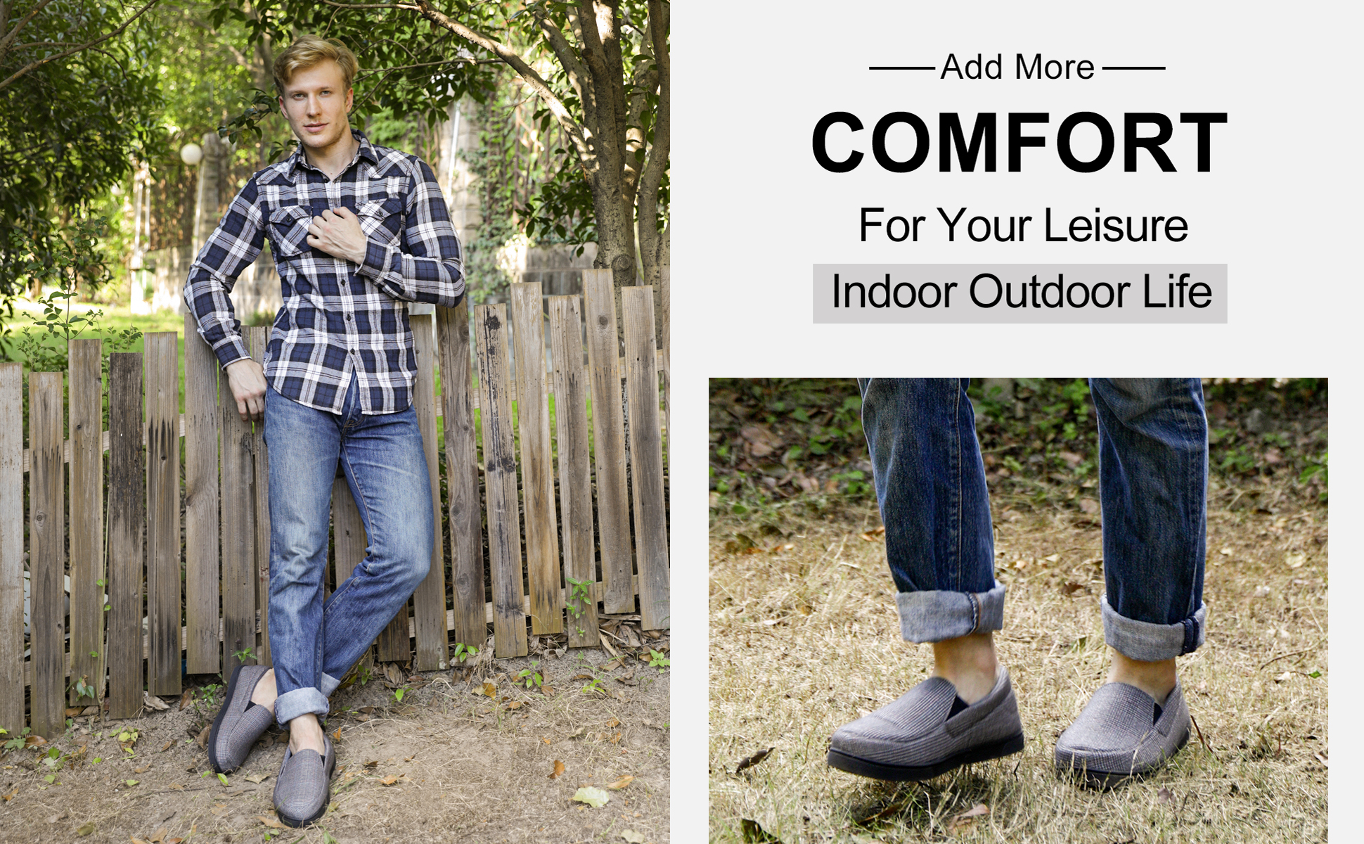 Dual elastic gores on both side and closed back design make the house casual slippers stay on your feet. You can wear the house shoes for a quick trip to the store, even enjoyable using them for football.