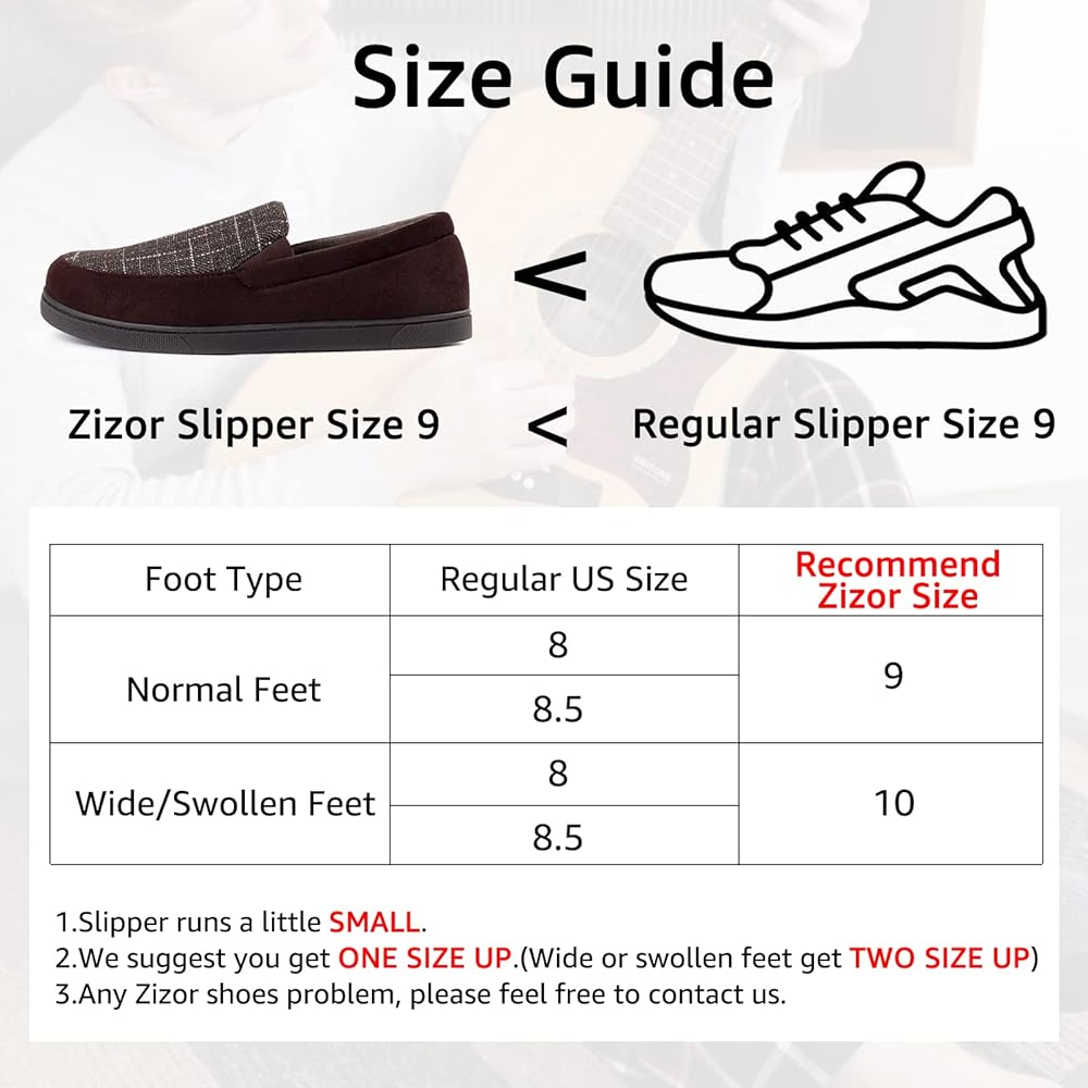 Size tip: Slipper runs ONE SIZE SMALLl. If you wear a size 10/10.5 in regular house shoes, a size 11 will likely fit you best (wide or swollen feet get a size 12). Any Zizor shoes problem, please feel free to contact us.