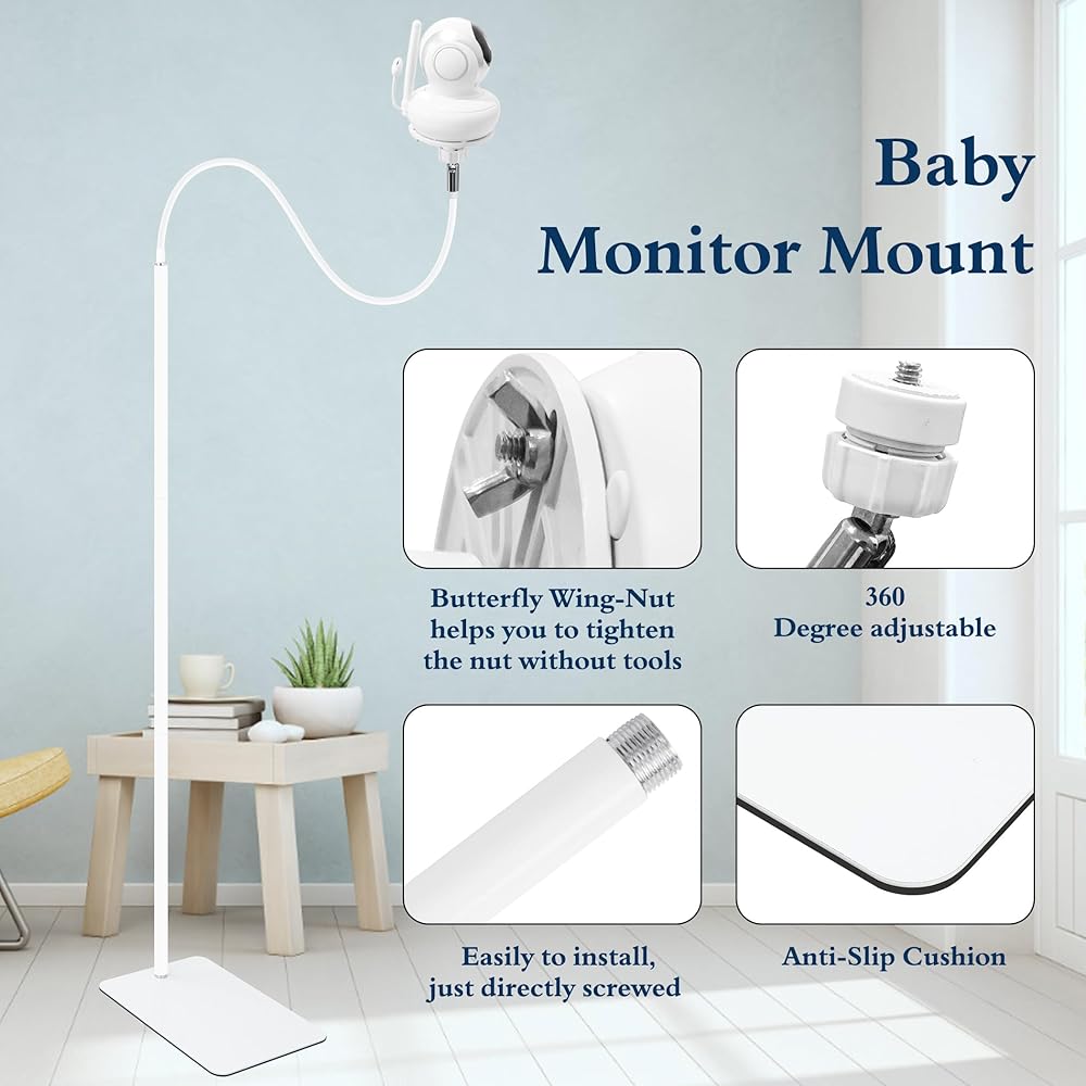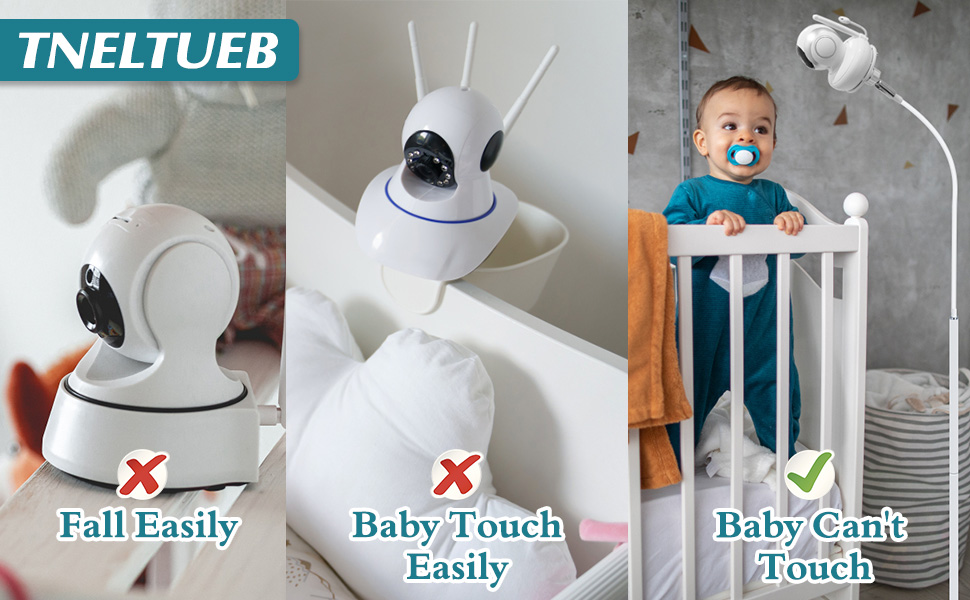 【Safety】: The camera stand that fixed to the bed or stroller may be easily grabbed by infants, make the camera fall and dangerous. Our monitor floor stand can avoid this situation, safely stand out of the baby' s reach, give you a more safer option.
