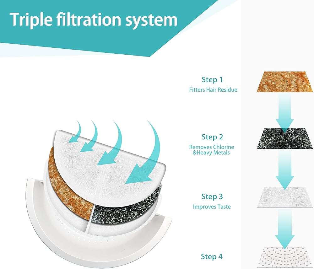 【Keep Your Pet Healthy】 Effectively filters hair and heavy metals and improves the taste of water so that pets can drink clean, fresh water all day long, which helps to increase water consumption and reduce the risk of urinary tract infections.