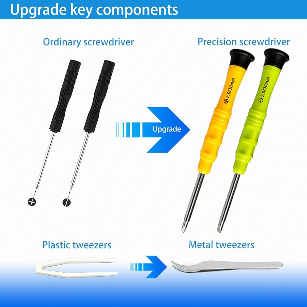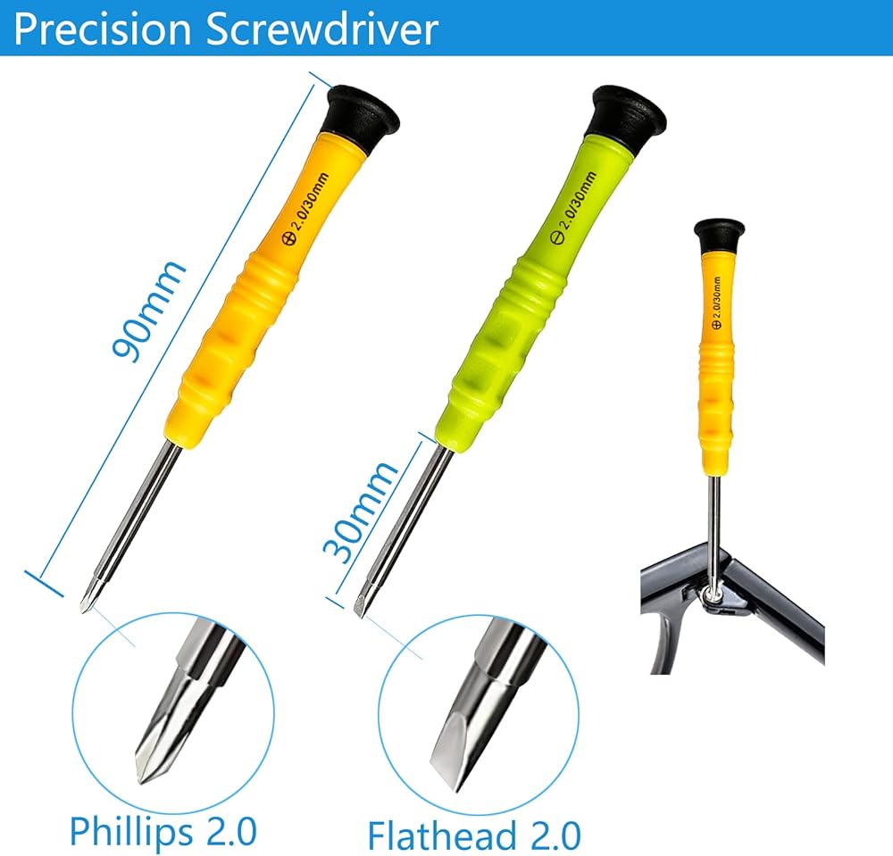 【Repair Kit accessories】 In addition to the usual accessories, each glasses repair kit comes with a separate phillips 2.0 and flat head 2.0 screwdriver, washer, screw cap, ear hook, and air non-slip nose pads, which can facilitate the repair of most styles of glasses.