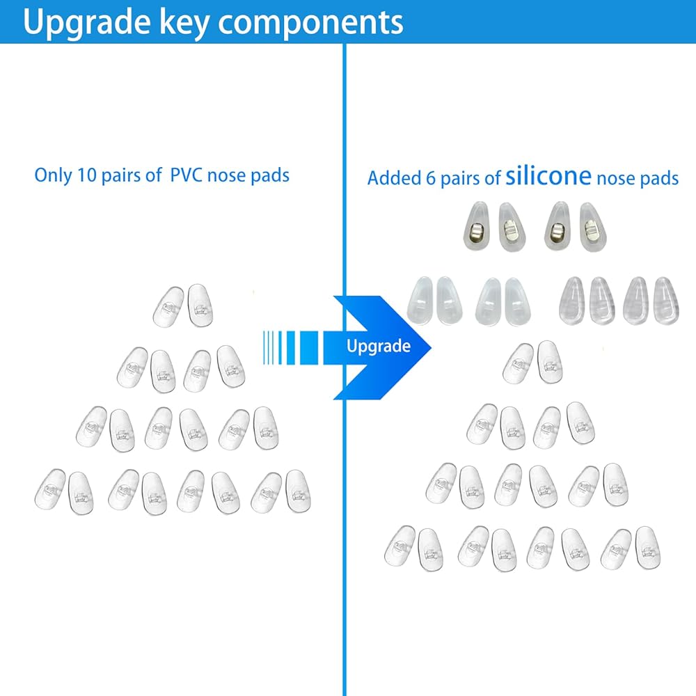 Upgrade Version Eyeglass Repair Kits, Repair Tools Kit Comes with 520 PCS of Glasses Screws, 16 Pairs of Eyeglasses Nose Pads, Suitable The Repair of Most Styles of Glasses
