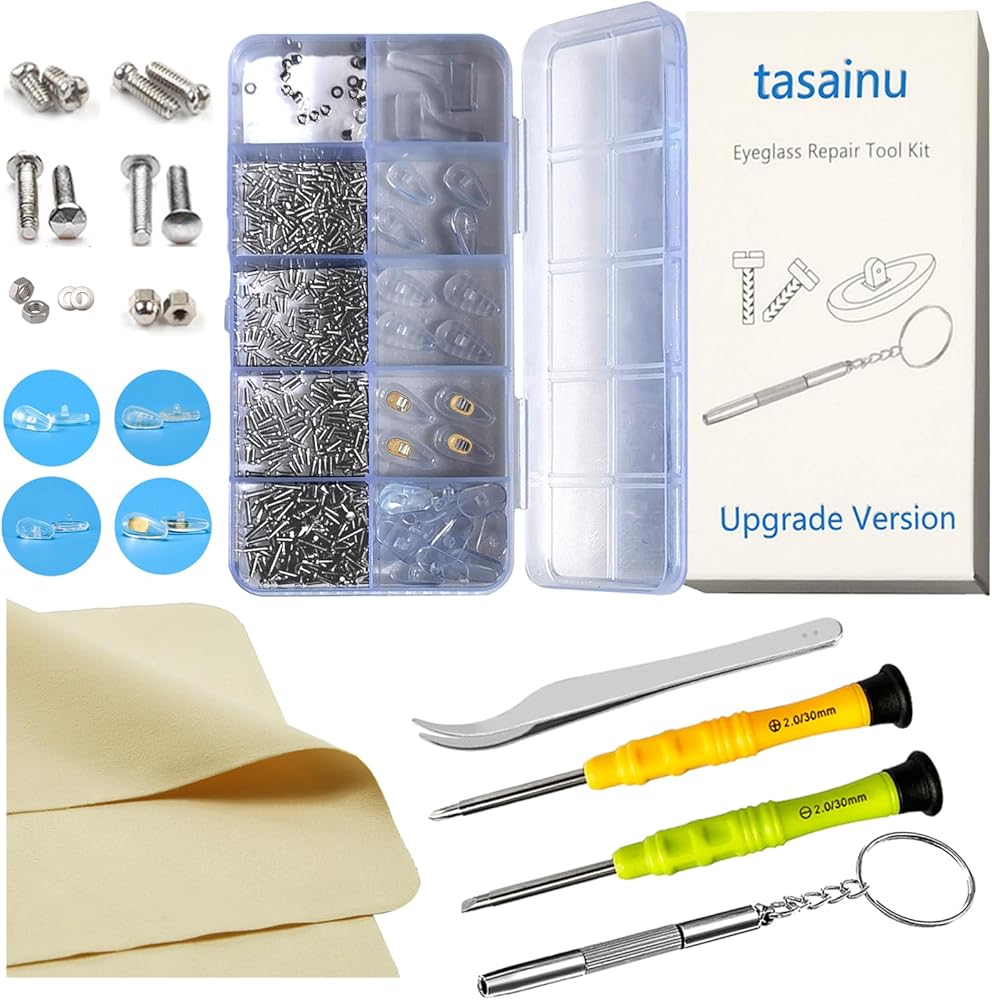 【Exquisite eyewear Repair kit】 The eyeglass repair kit contains about 520 PCS screws of different sizes, 16 pairs of silicone nose pads, cleaning cloths, tweezers, and screwdriver. We store them in small storage boxes for easy use and maintenance.