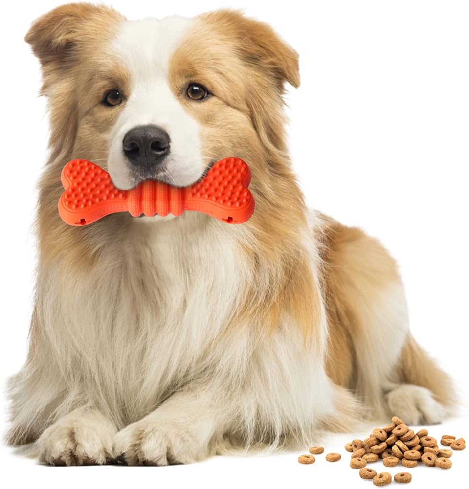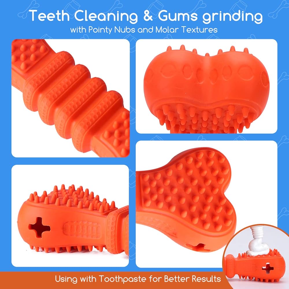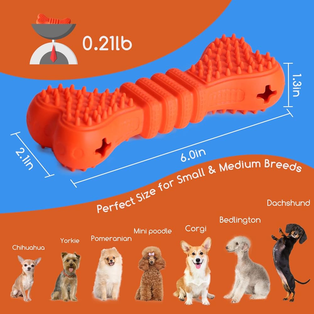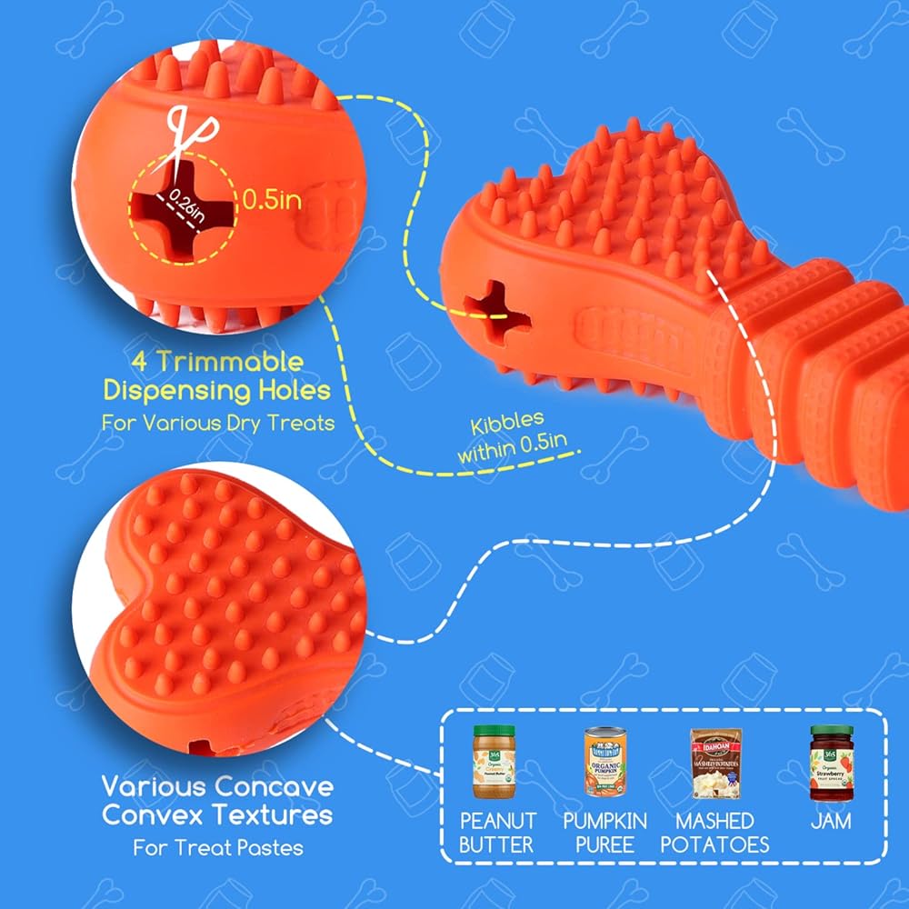Nobleza Durable Treat Dispensing Dog Chew Toys, Safe Natural Rubber Dog Bone Toy for Teething and Teeth Cleaning of Small and Medium Breeds, 6 * 2.1 * 1.3 in, Orange