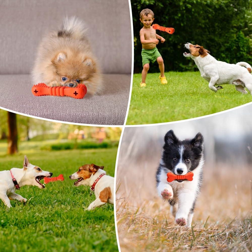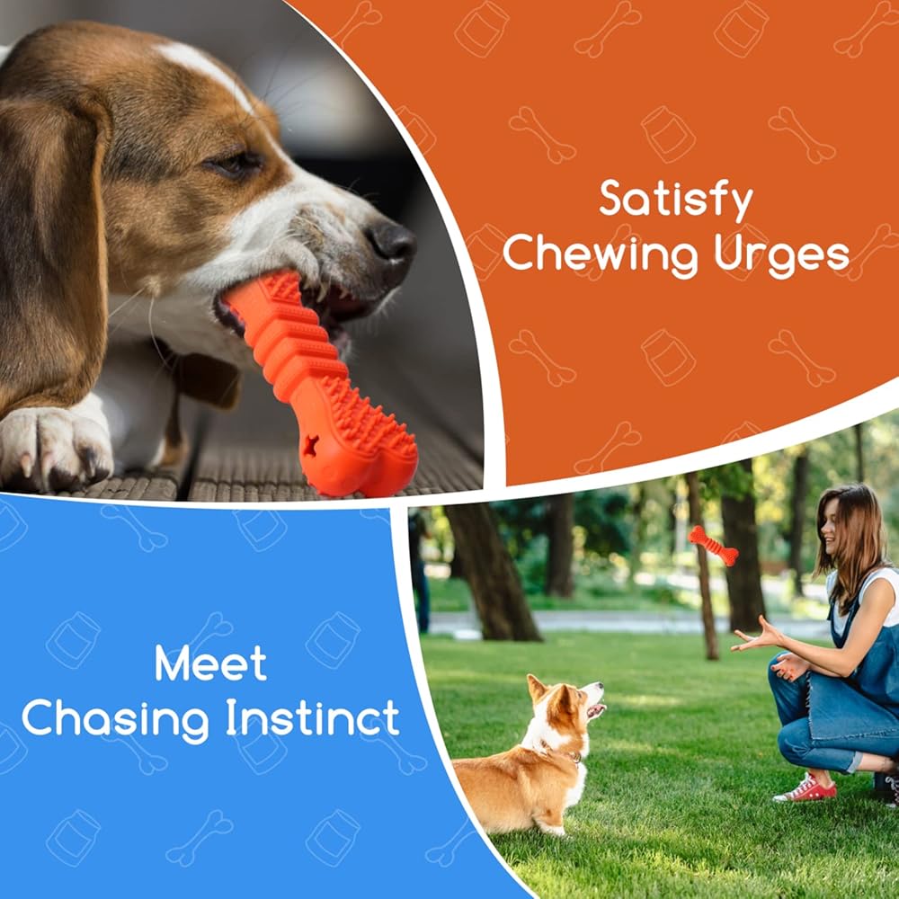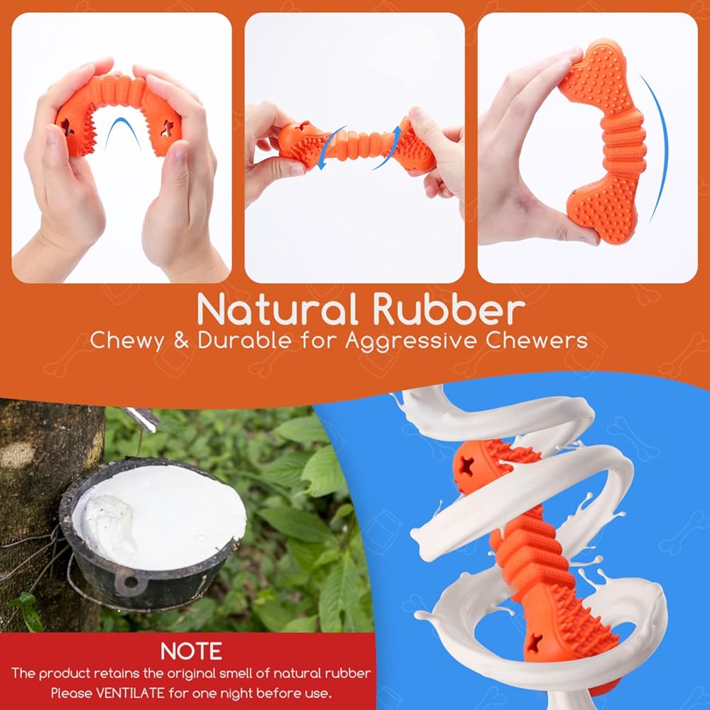 ⭐ SAFE MATERIAL & NO ADDED FLAVOR: Nobleza rubber dog bone toy are made of soft natural rubber, which is safe and lead-free. The tough rubber design keeps your dogs fun and busy for months-long instead of days or weeks. ▲ NOTE: The product retains the original smell of natural rubber, and please VENTILATE for at least 1 day before use. And if you think it still has a smell, please ventilate longer.