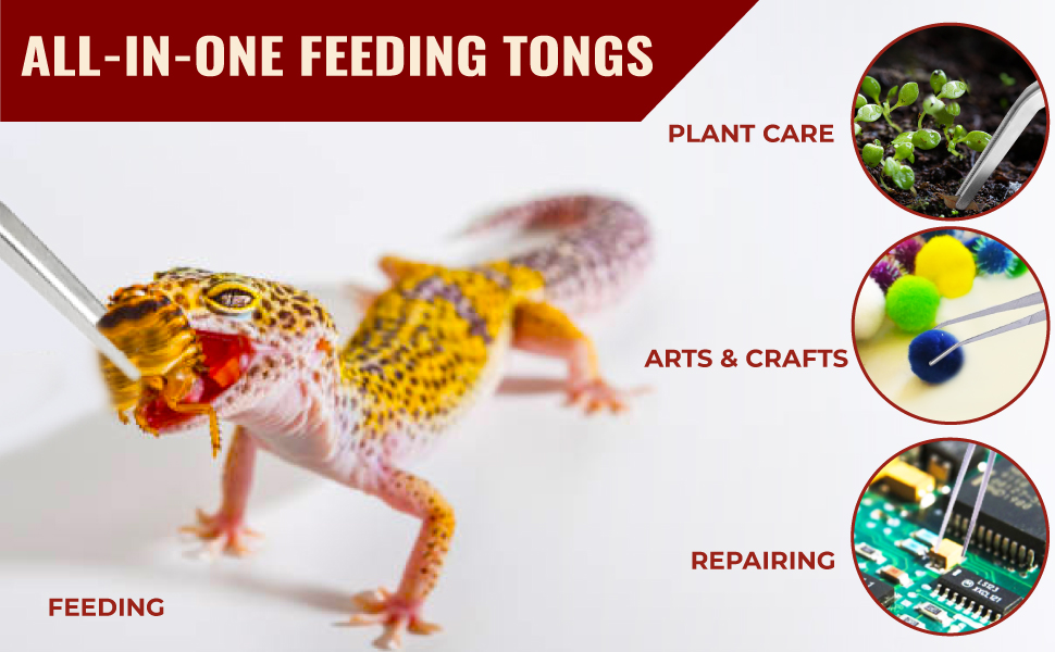 Easily Picks Up Many Types Of Food --- The pair of CoCoo Reptile Feeder Tongs are excellent for feeding all types of food to your snake, iguana, lizard and gecko. Their delicate tips gently hold their food without crushing or squeezing them. There are ridges along the middle of the tweezer handles to provide a secure and comfortable grip when feeding your reptile pets.