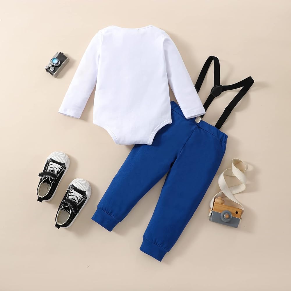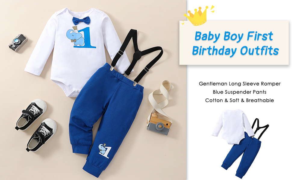 [1st Birthday Outfit for Baby Boys] Romper adorned with 1 and elephant pattern, and a lovely bowknot at front, make your baby more adorable and handsome. Matching pants with elastic waistband for providing comfortable fitting. Y- back Suspenders designed with 3 clips and 2 length adjusters is strong to hold pants up, easy to adjust for a better fit.