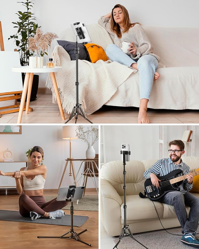 【Premium Aluminum Construction】 Crafted with a robust tripod and main pole made from high-quality solid aluminum alloy, this floor tablet mount ensures stability and durability, offering a secure and reliable support for your devices.