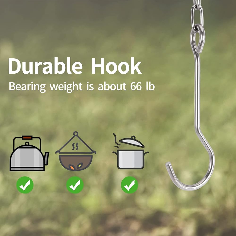 Durable and Reusable: The camping tripod board set is made of polished 304 stainless steel that can withstand high temperatures. The polished 304 stainless steel surface is smoother, waterproof, rust-resistant, high-temperature resistant, durable, and easy to clean. Great handy camping addition to camping kits.
