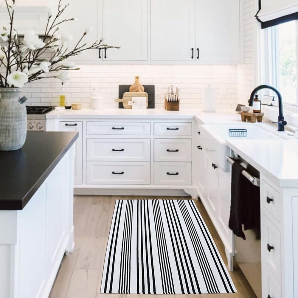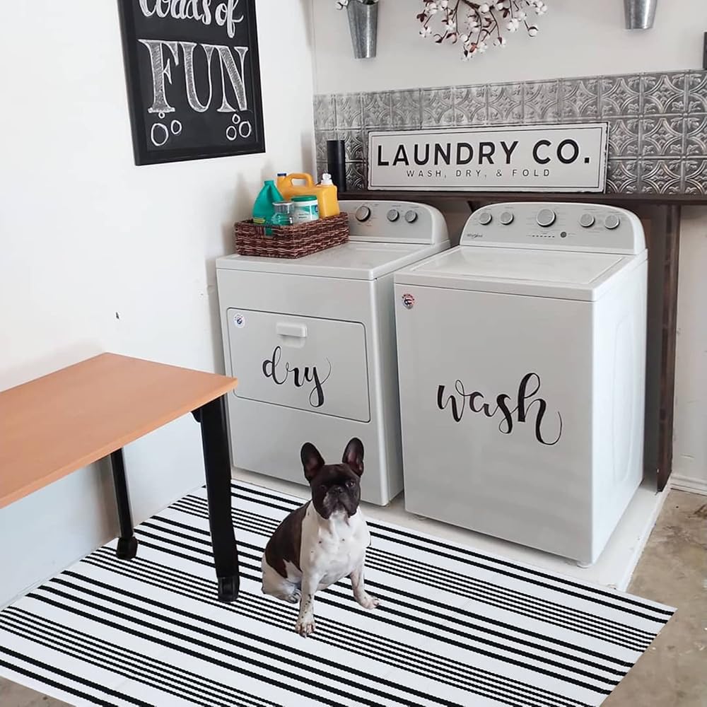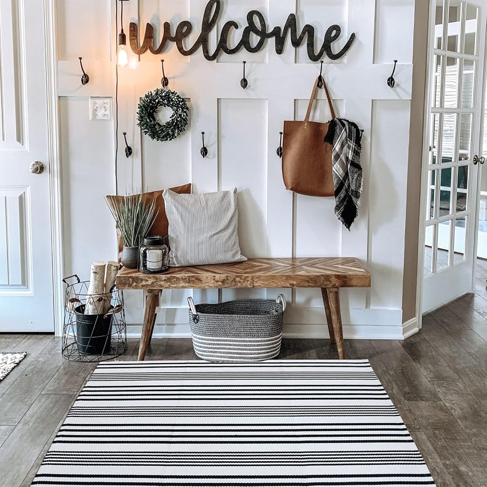 ⭐CLASSIC STRIPED PATTERN:The black and white Striped rug offers casual elegance in the form of a classic Striped pattern Keep your home beautiful and clean.