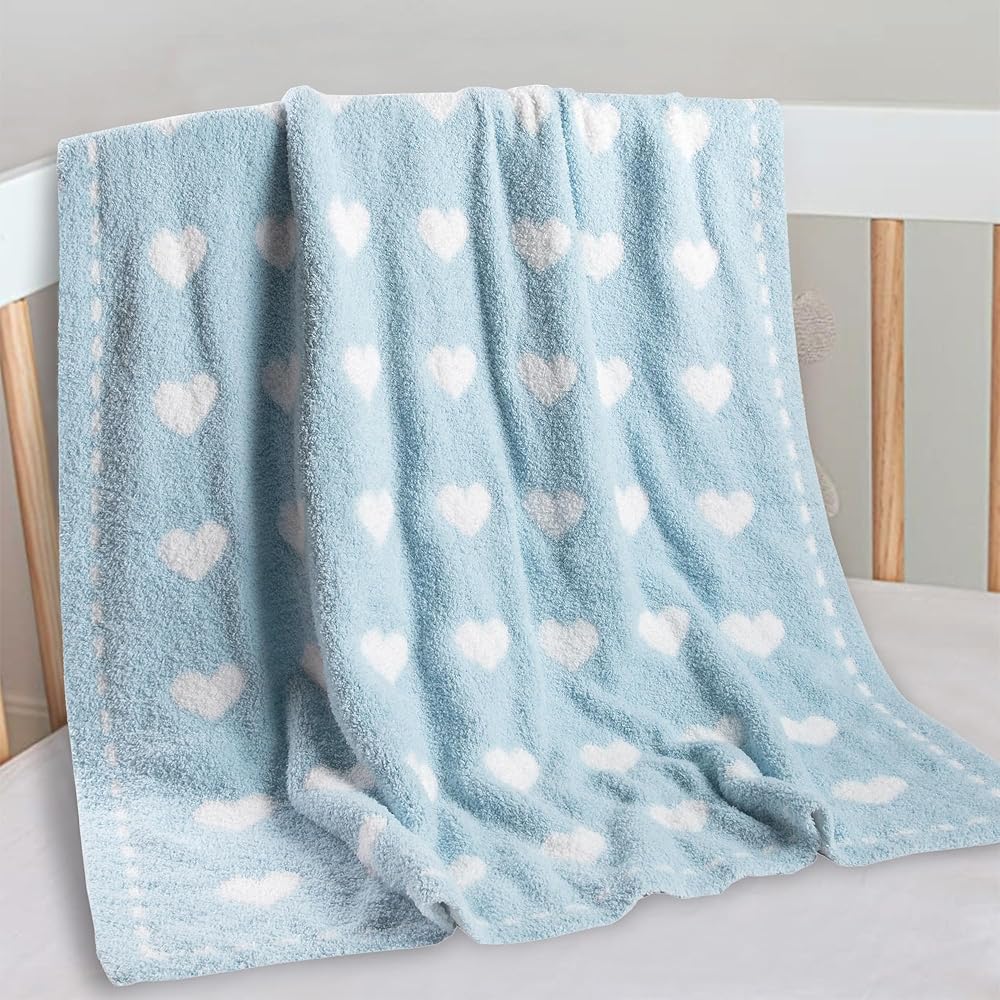 DOUBLE-SIDED - Double-sided blanket with different tones of heart shapes on either side.30 x 40 inches,perfect size to accompany your little one from baby to toddler.