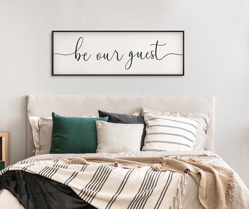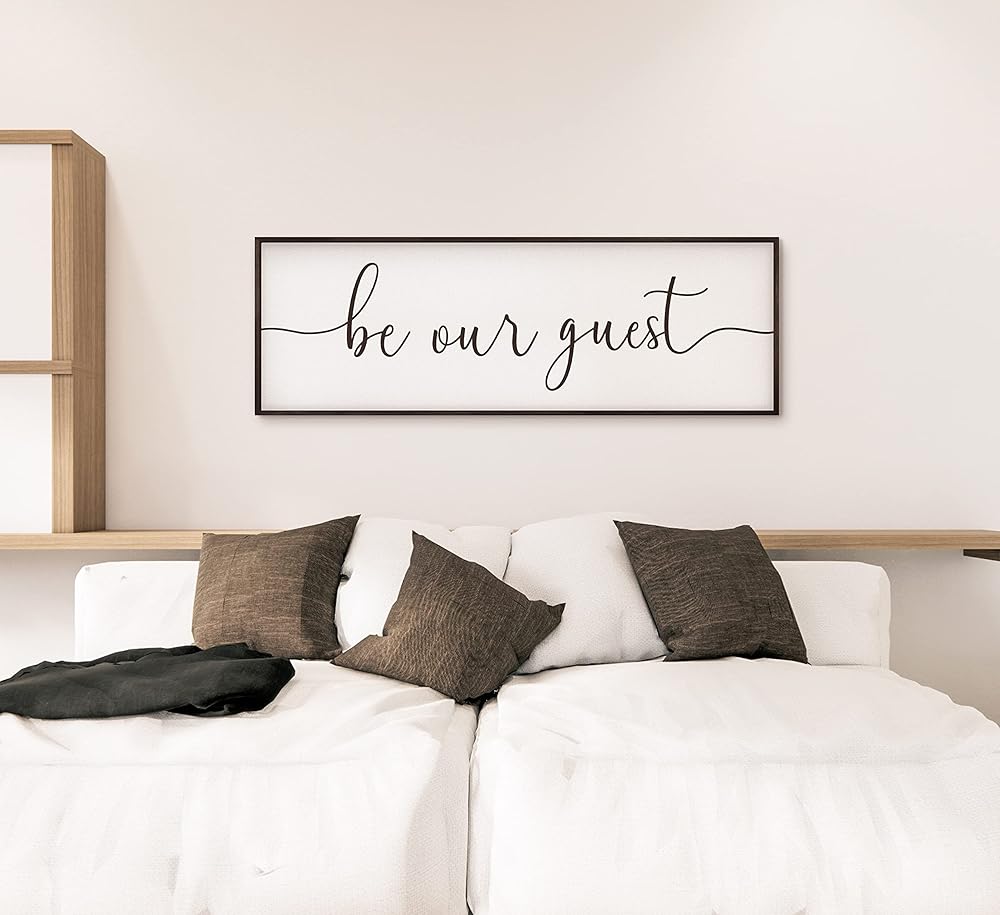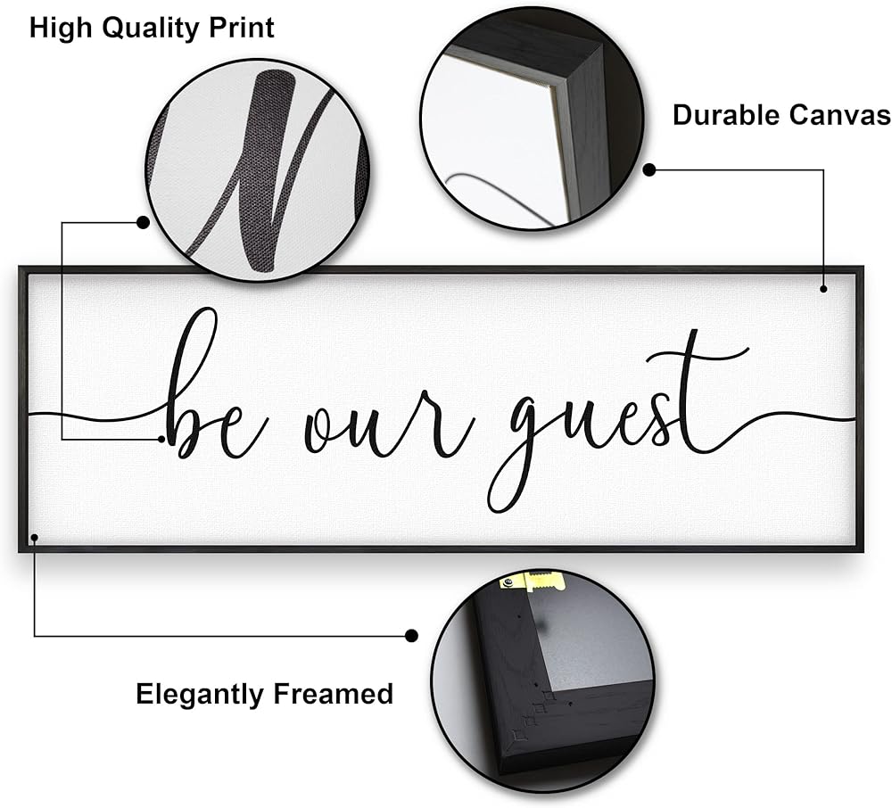 Be Our Guest Sign Wall Decor - 41"X14" Be Our Guest Wall Art Wood Framed Wall Decor for Bedroom Be Our Guest Sign Above Bed Be Our Guest Wall Art Hanging(Black)