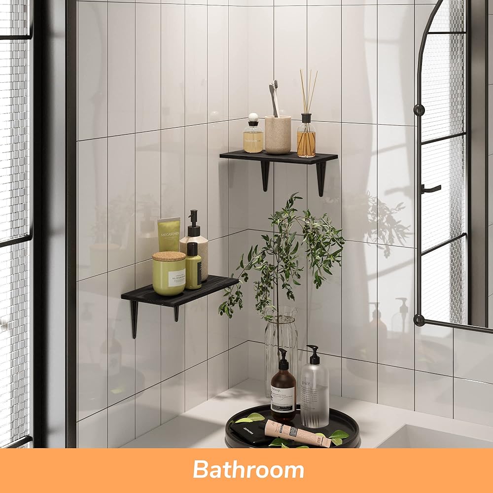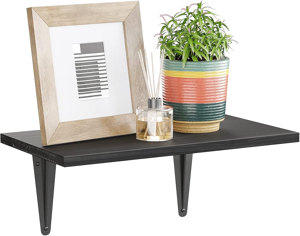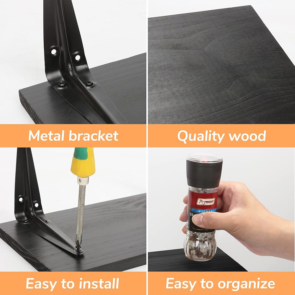 BAMFOX Black Floating Shelves Rustic Wood Wall Shelf for Bedroom, Bathroom, Living Room, Kitchen