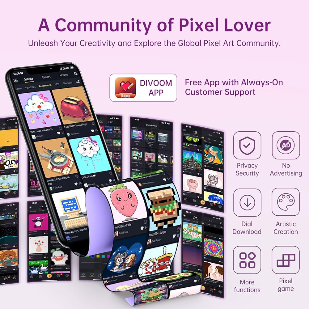 【Pixel Art Creation】 - Unleash your creativity with the Time Gate. Our extensive pixel art library, updated daily, lets you personalize your display with animated designs, messages, and more, reflecting your unique style and mood.