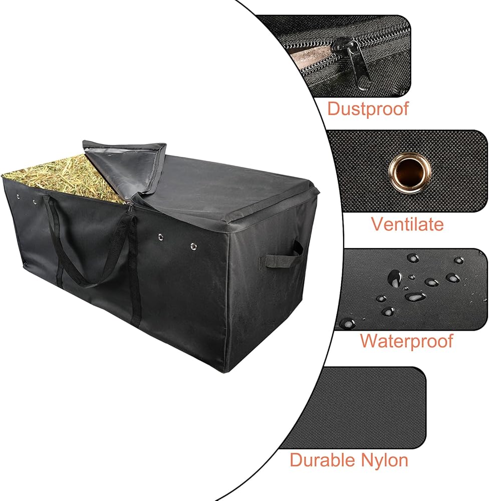 - 3.There are air vents on the side to have decent air ventilation in and out of the bag, so the hay bale will be fresh all the time.