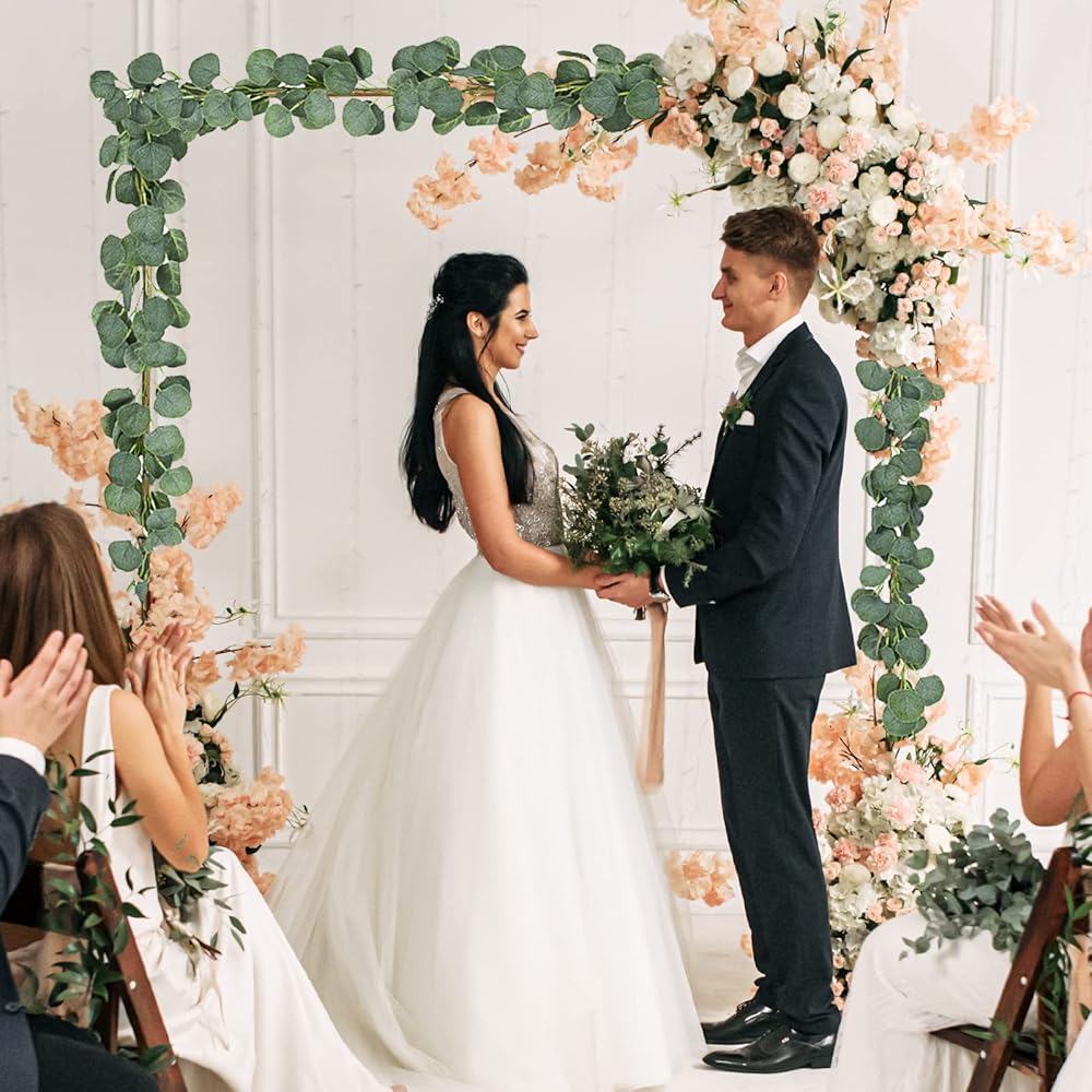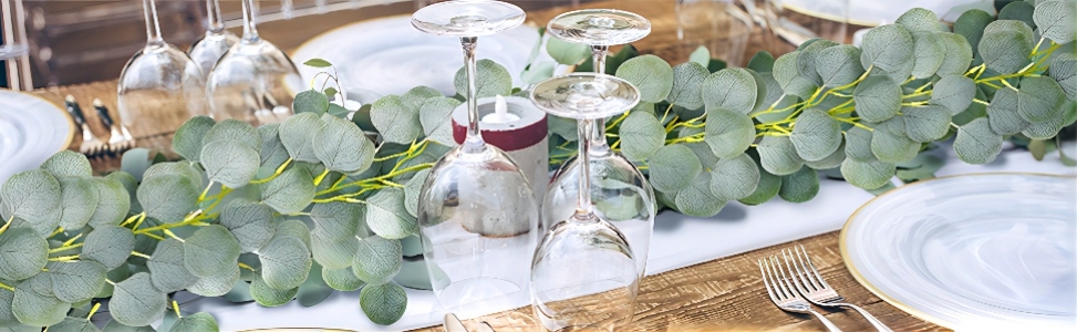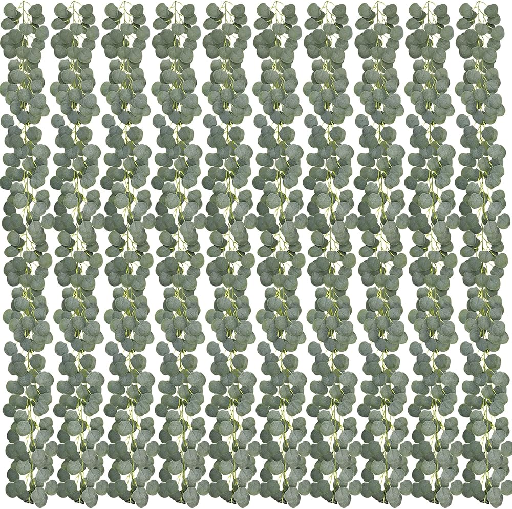 Eucalyptus garland for table package: 10 packs of beautiful silver dollar eucalyptus garland bulk. Wedding garlands made of good quality silk leaves, and plastic vines make it looks more natural.