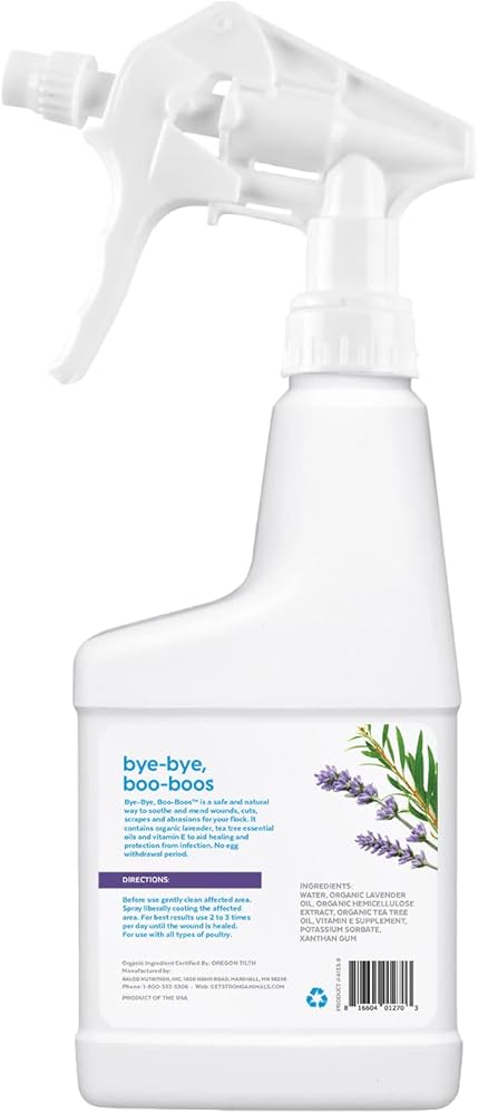 Bye-Bye, Boo-Boos is a safe and natural way to sooth and mend wounds, cuts, scrapes and abrasions for your flock. It contains organic lavender, tea tree essential oils and vitamin E to aid healing and protection from infection.