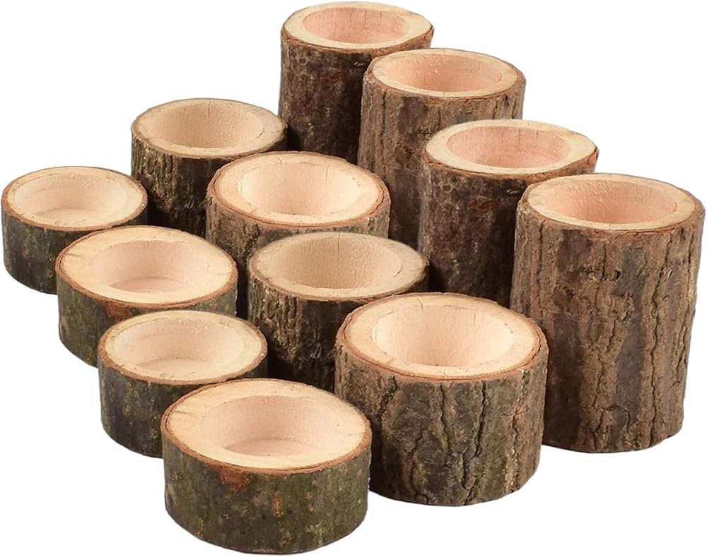 3. Wood candle holders are perfect for little arrangements or to put on a buffet. Also could turn them over and use them as a stand.