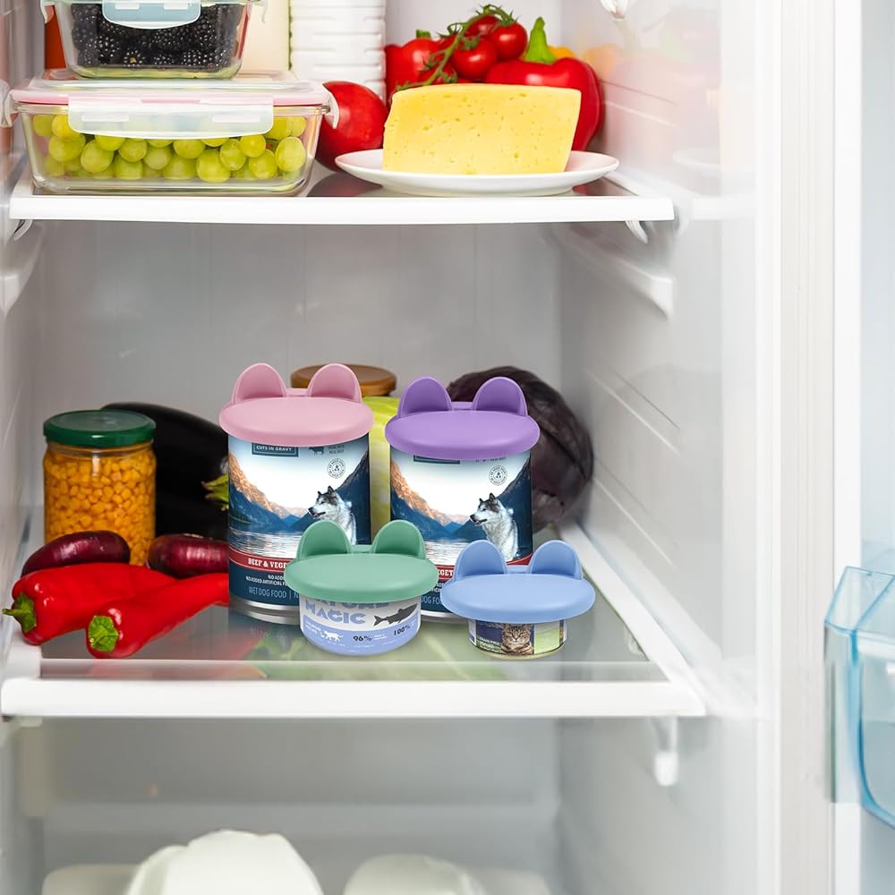 🐾Elegant Ear Design Pet Food Can Lids with a Touch of Whimsy: Dive into a palette of playful colors with our set of four pet food can covers, available in delightful shades of pretty pink, brilliant blue, vibrant purple, and refreshing mint green. Perfect for keeping your pet's food fresh and your kitchen stylish!