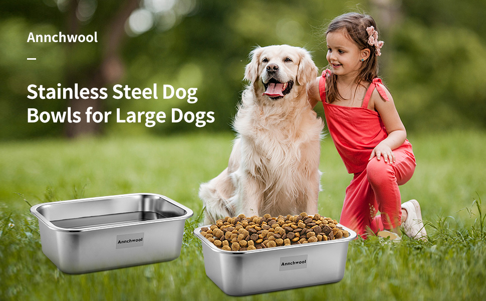 [Ideal Pet Bowl]:The package will come 2 Pcs extra large dog bowls,the size of the large bowl is:11.2 inches long,7.4 inch wide,3.9 inches deep. You can use two dog bowls to pack food and water separately,make your dog enjoy their meal.