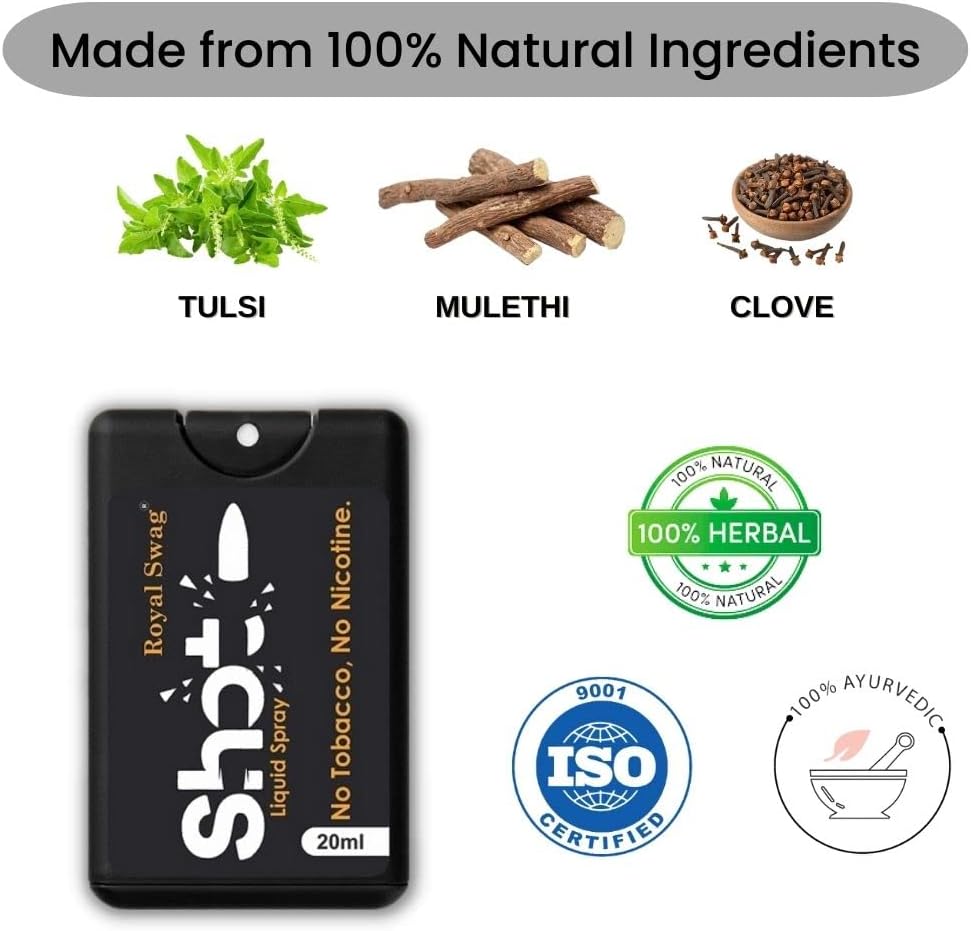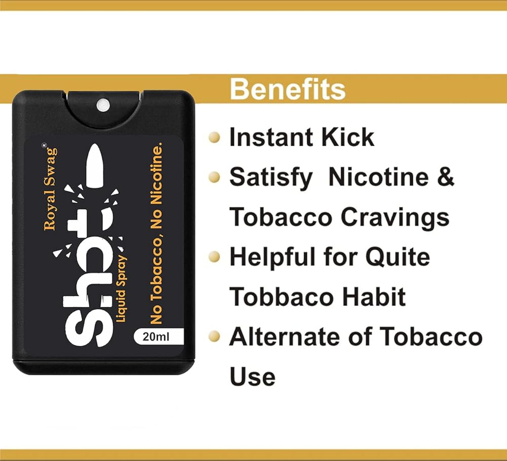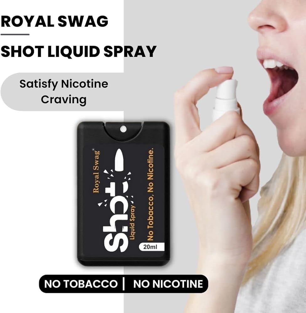 Royal Swag's Shot will help you to stop your craving of nicotine Use, Take Shot's 2 to 3 Spray in mouth and then Light up your cigarette after when you feel craving of nicotine