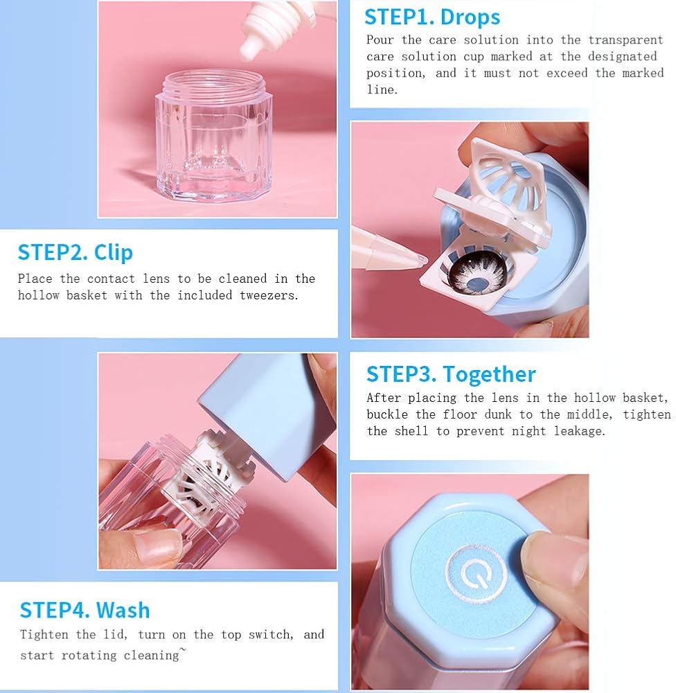 • 【Fast Rotating Contact Lens Cleaner】: This contact lens cleaning case is adept in advanced fast rotary tech,which is a completely physical way, providing a completely cleaning of the tear protein and small particles in your lens.It can be used to clean various contact lens, such as soft lens,hard lens, RGP lens, HCL contact lens, SCL contact lens or okeratology contact lens.