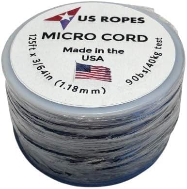 This listing is for one (1) spool of US Ropes Micro 90 Cord of 125 feet. This all nylon braided cord is strong and lightweight. Comes on a compact spool, great for home, camping, boating and outdoor uses. The cord is a fine braid of 1.18mm (3/64") and is suitable for arts, crafts, wind chimes, bracelets and anywhere a fine braided cord is required. Not rated for climbing or overhead lifting.