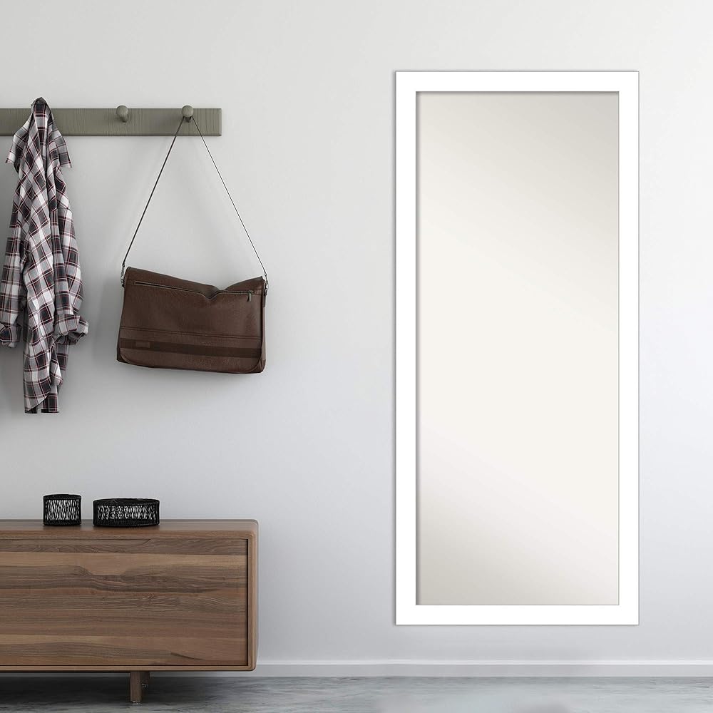 Amanti Art White Full Length Mirror, 64x28 Wedge White Tall Free Standing Body Wall Mirror Full Length for Dressing, Modern Frame, Lean on Floor or Hang, Wall Decor