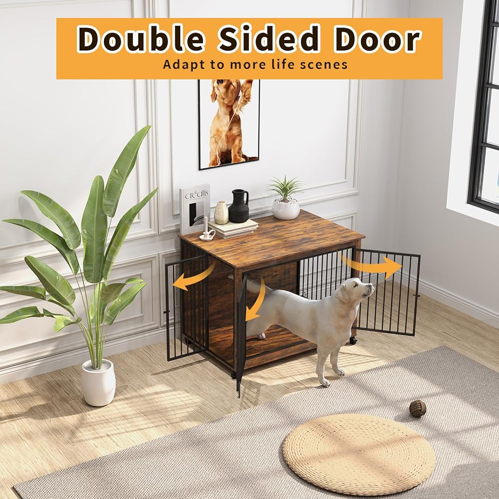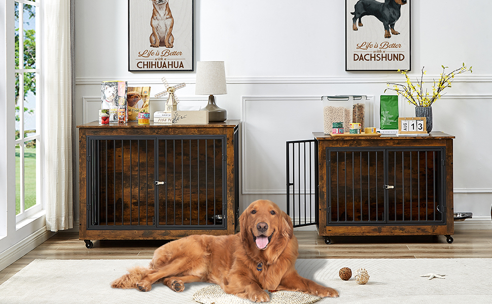 Furniture style dog crate, also known as a dog cage or kennel. Designed for dogs to relax and stay safe indoors. For dogs, a crate can serve as a comfortable space to sleep, rest, and recover from illness or injury. It can also help with indoor training and prevent destructive behavior when the owner is away.