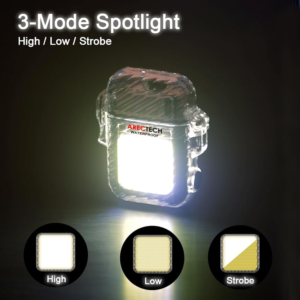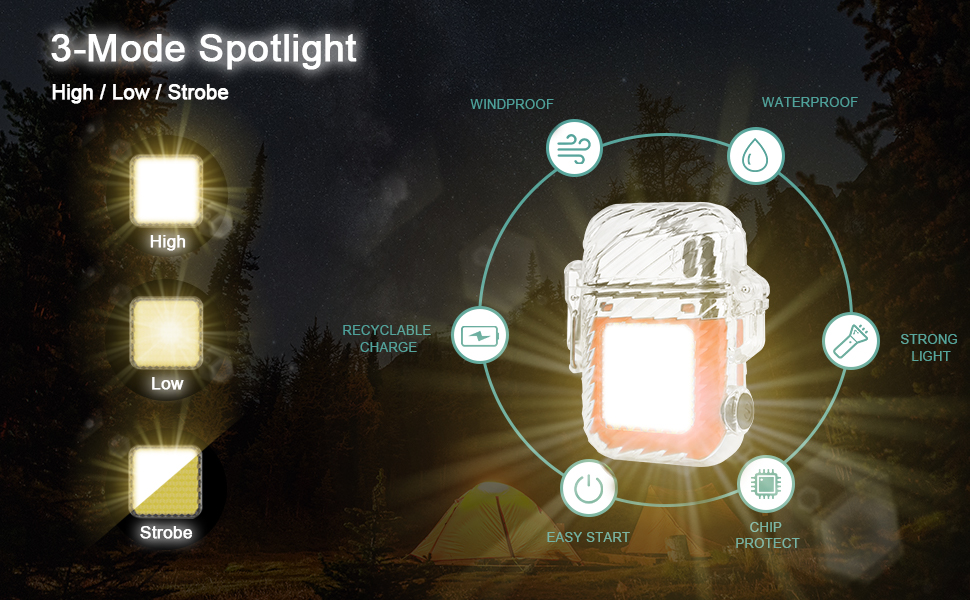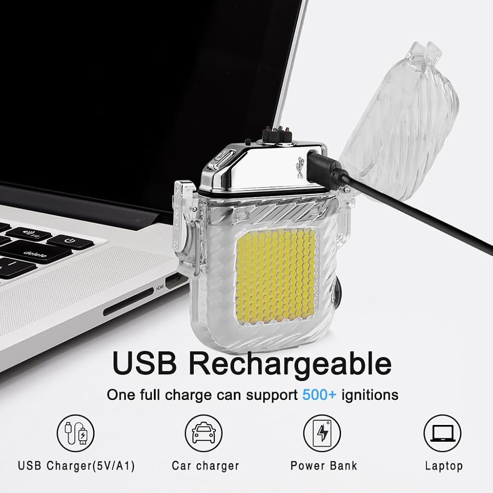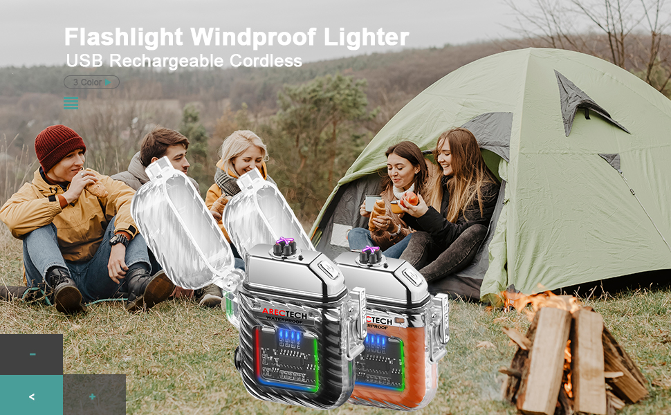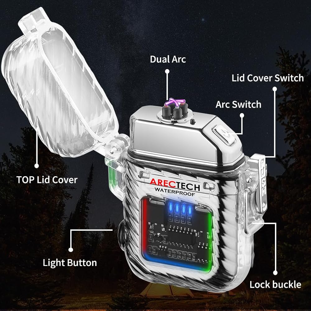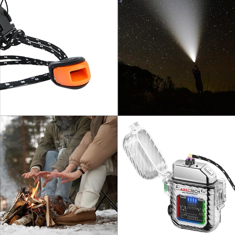 【Weatherproof Arc Lighter】This design makes it work even in heavy winds.Windproof and flameless,usb rechargeable arc lighter. It is a perfect outdoor lighter,camping fire starter tool,an emergency fire starter tool,edc camping survival tactical gear and more.