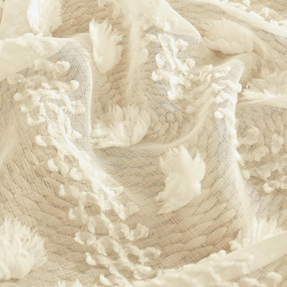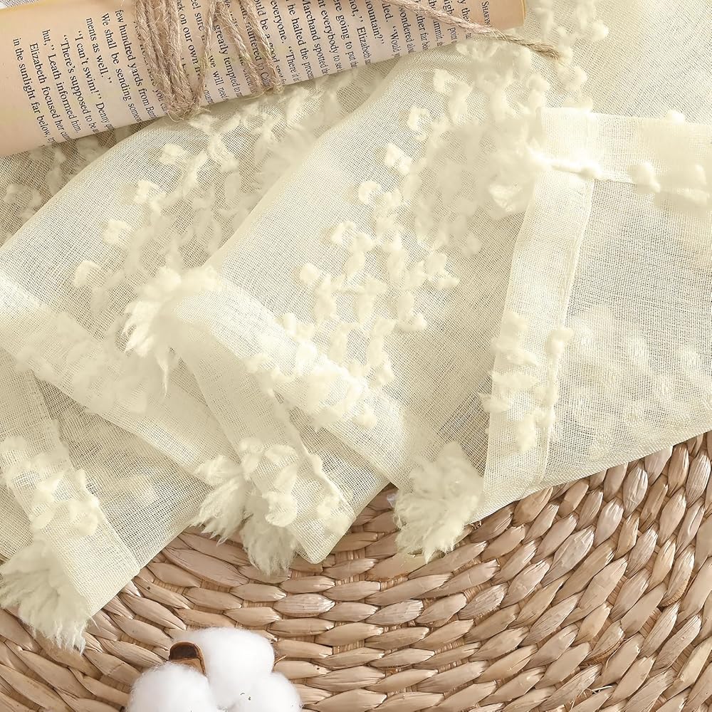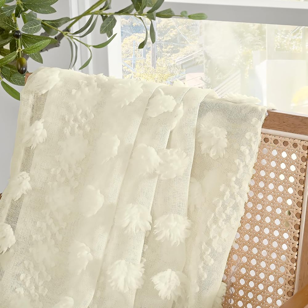 Elevate your windows with our Sheer Curtains featuring Pom Poms! Our faux linen drapes are adorned with stylish pom flowers and tuft dots, providing a cute and pretty look to your interiors. The curtains feature embroidery cotton pompoms that are sewn firmly for long-lasting durability and a soft-to-touch feel. Upgrade your space instantly with these lovely and chic draperies that will add a touch of elegance to any room.