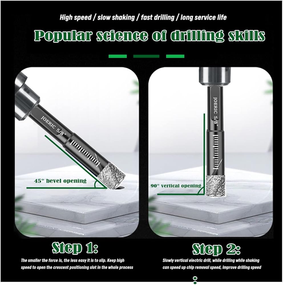 Our Dry Diamond Bits Drills Are Vacuum Brazed So The Drill Can Cut Through Harder Materials At Higher Temperatures. Ideal For Drilling Granite, Ceramic, Glass Stone And Marble Tiles And Similar Materials (Not Suitable For Wood).