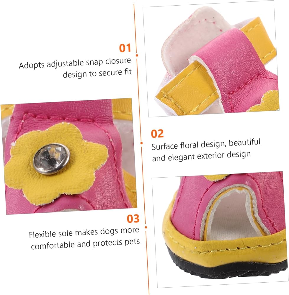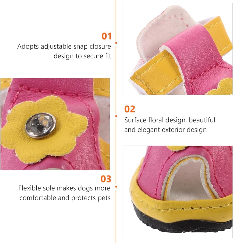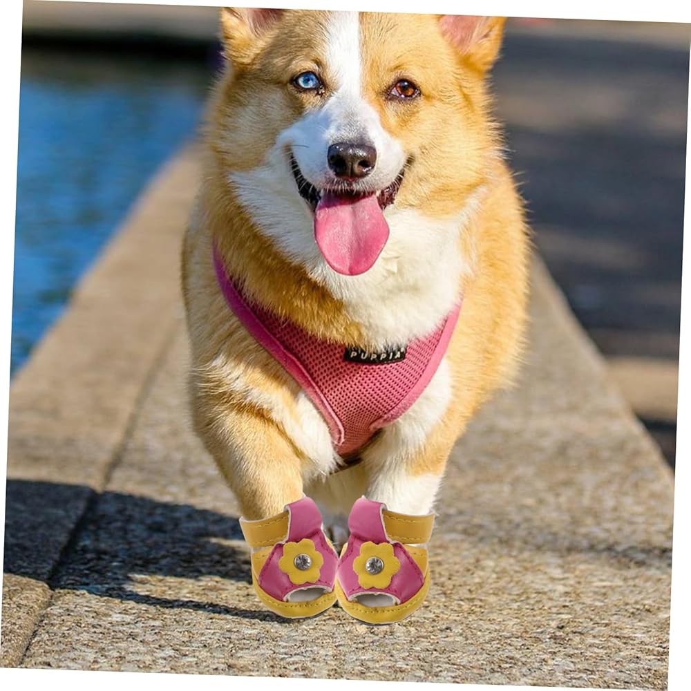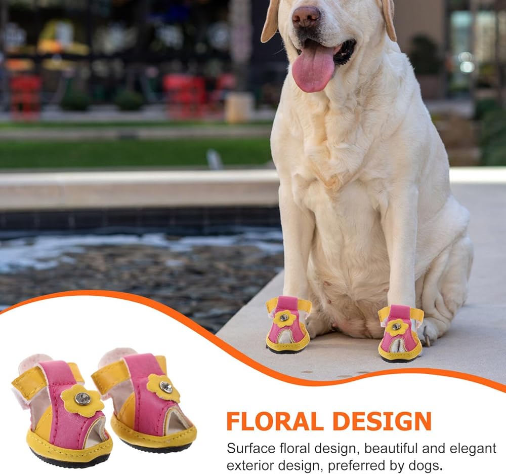 This is a set of 4 pieces pet dog shoes.The flexible sole makes the dog more comfortable, with 5 sizes to choose from. Dog shoes for summer, protect your pet avoid burned when walking on hot pavement, deck and beach.