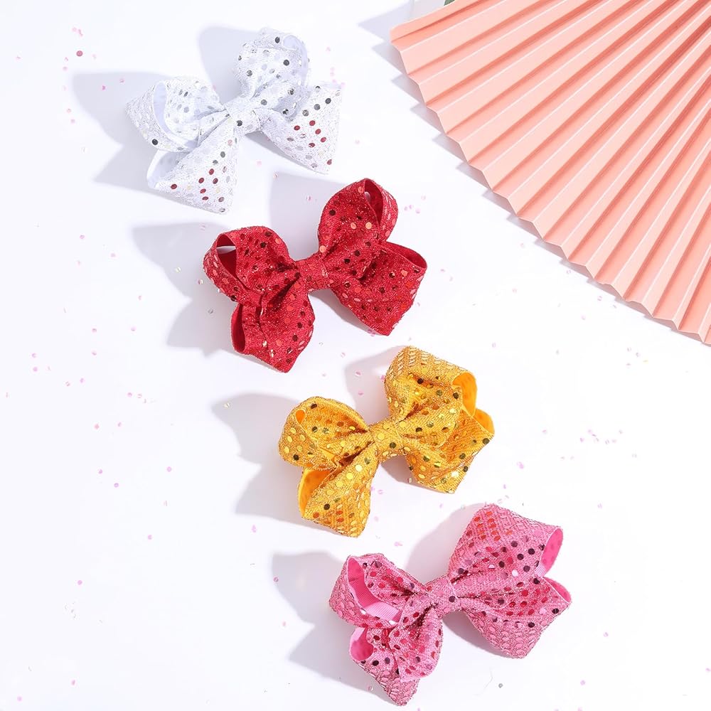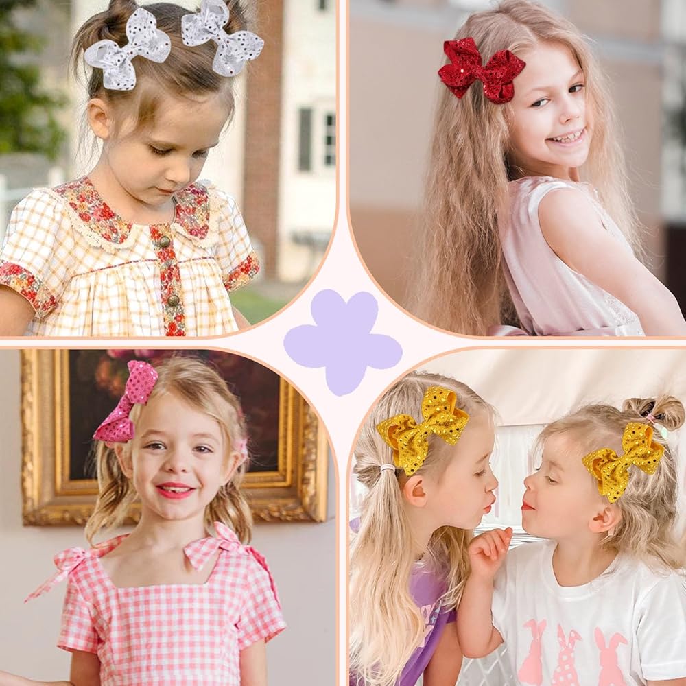 🎀【Package Includes】- 4PCS glitter hair bow. You can choose a color to match any of your sweet girls' outfit! These girls hair bows clips are absolutely adorable and well great for girls toddler accessories hair decoration.