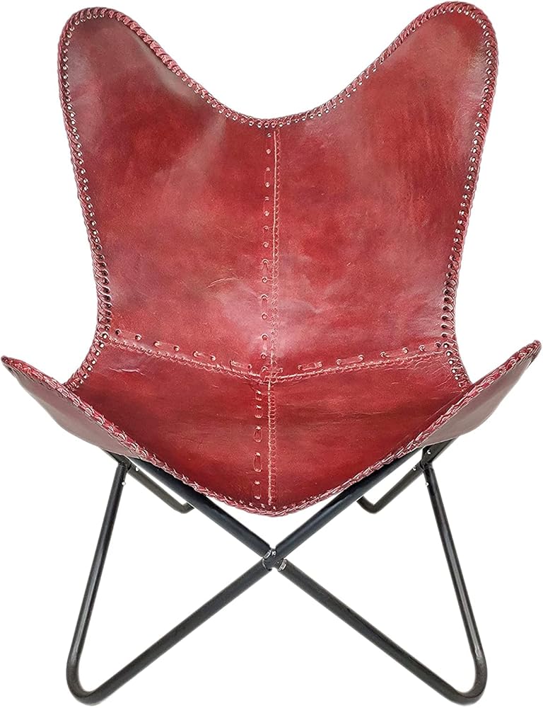 ✅ LEATHER BUTTERFLY ARM CHAIR ONLY COVER. Made of real genuine leather this retro butterfly chair cover is durable and built to last. The four corners of the chair are also wrapped in real leather. No need To Assemble - Its purely Foldable and Ready To Use Craftsmen who have had their knowledge passed down from the original designers over generations. This classic iron butterfly chair is based on the original 1938 design and is made by Indian Artisans Craftsmen who have had their knowledge passe