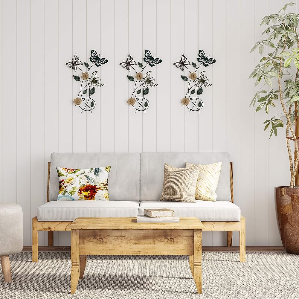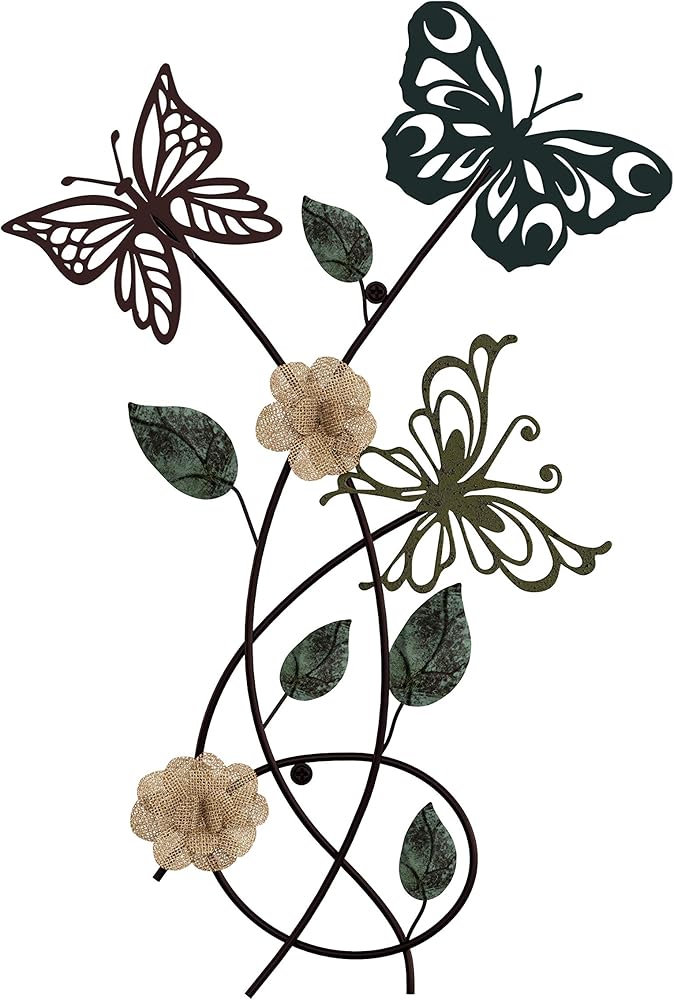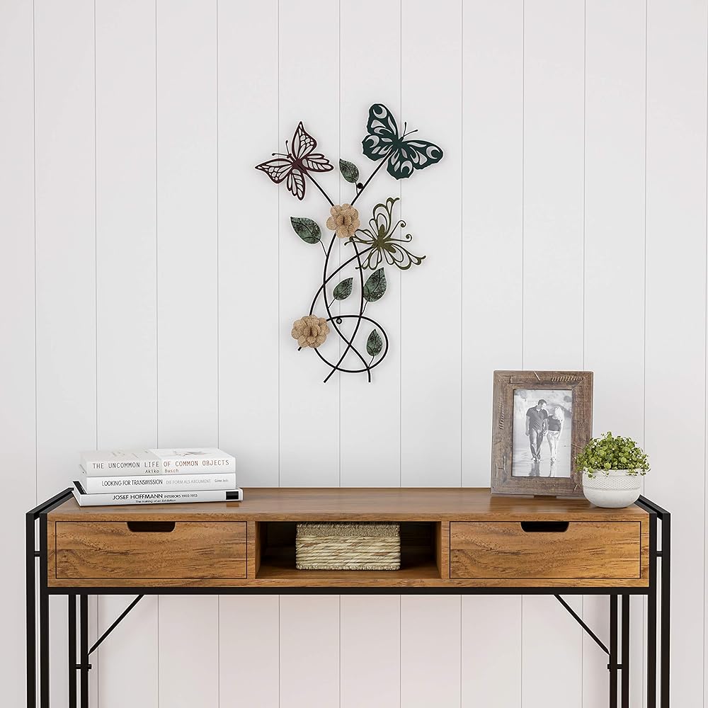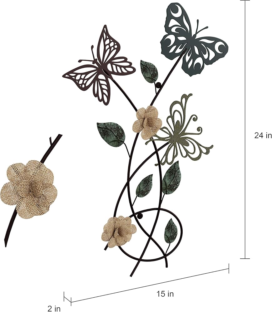 Instantly add color and dimension to your home with this nature-inspired Metal Garden Butterflies Wall Décor by Lavish Home. Butterflies are nature's beautiful symbol of transformation and signify the promise of a brighter future. Hanging this wall art acts as a colorful reminder of this symbolism to yourself and all who enter your home! The decorative art requires no assembly and comes with hanger holes on the back for easy wall mounting. The hand painted cutout butterflies and burlap flowers create beautiful textures that compliments many different décor styles like modern farmhouse, rustic, or classic, and can easily enhance any room in your home or office.