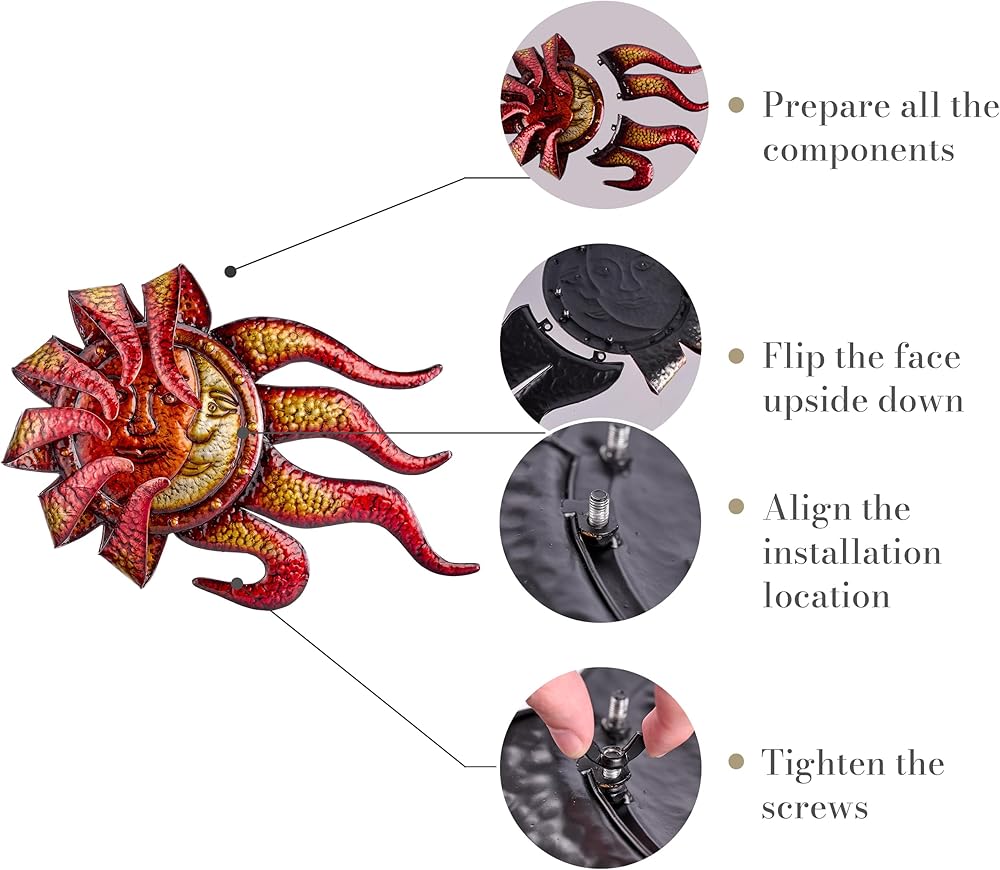 【Waterproof & Fade-Resistant】 Crafted with superior quality materials, our Sun&Moon wall art is built to withstand the elements. Its waterproof and fade-resistant properties ensure long-lasting beauty and durability.