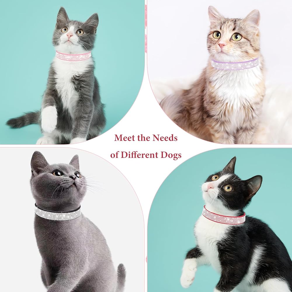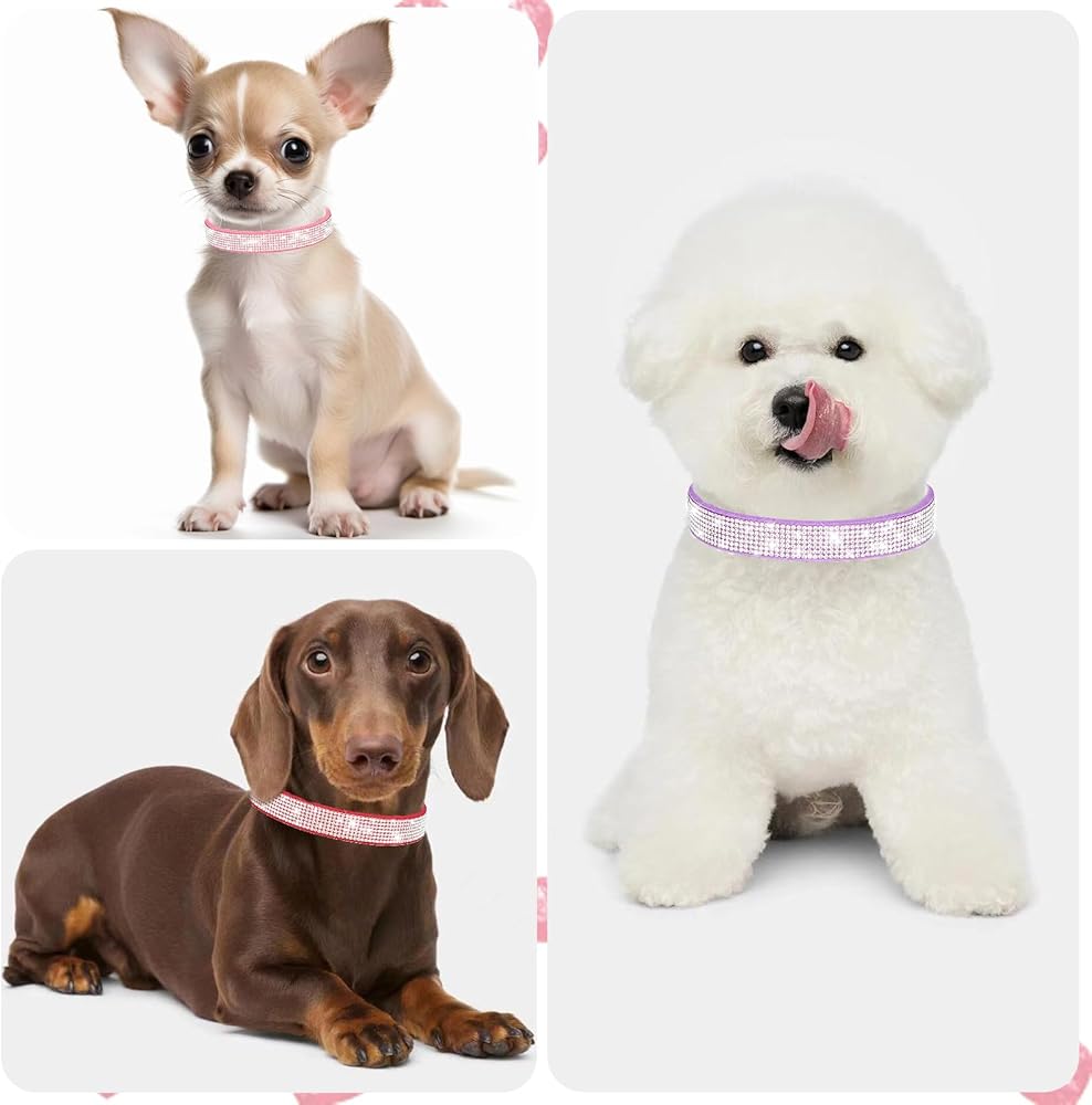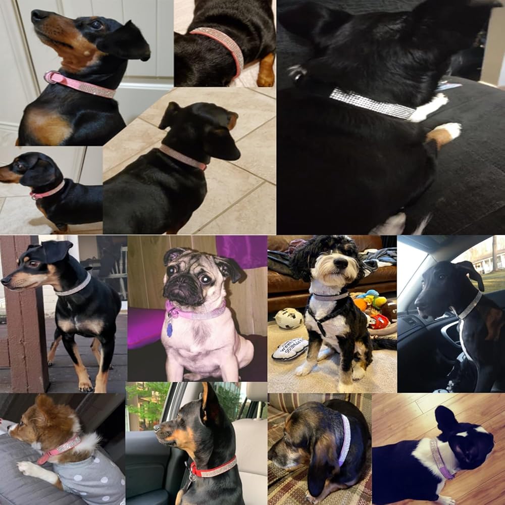 HIGH QUALITY MATERIAL: Suede microfiber, soft texture, comfortable and breathable, durable, comfortable to wear, will not hurt the dog's fur, can protect the dog's neck well.use for cat collars also.bling dog collars for small dogs, bling dog collars for medium dogs , bling dog collars for large dogs. STYLISH DESIGN: High-quality hot diamonds are not easy to fall off and sparkling, providing a fun and amazing pet neck ornament for your lovely dog. it will help you get tons of compliments from friends, neighbors or other passersby. VERY DURABLE: High quality zinc alloy fasteners, strong and durable, no rust. MULTIPLE COLORS AVAILABLE: Pink dog collar, black dog collar, purple dog collar, rose red dog collar. 5 eyelets are adjustable, small dog collar, medium dog collar, large dog collar. WARM PROMPT: The collar does not stretch itself, please make sure leave only 20 fingers between collar and dog neck. a properly fitting collar and harness won't leave any room for your dog to chew.